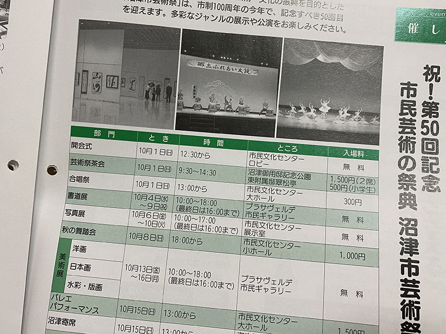 続いて、第50回記念大会を迎えた沼津市芸術祭や、秋の沼津を楽しむコンテンツ。