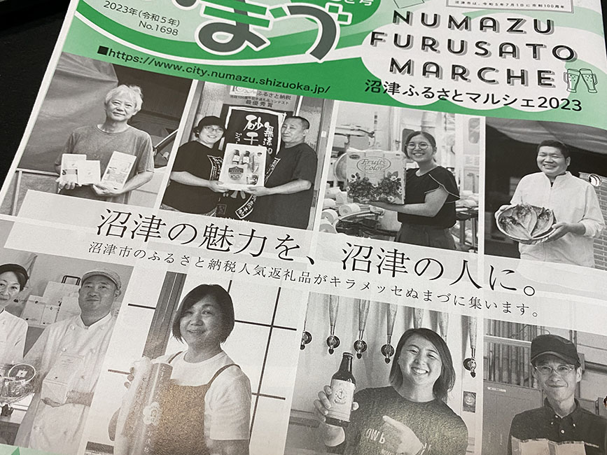 表紙は以前もちょっとお知らせした、沼津ふるさとマルシェ2023の話題。ぬまつーブースも出店予定。ふるさと納税の事業者の皆さん、いい顔するなあ。