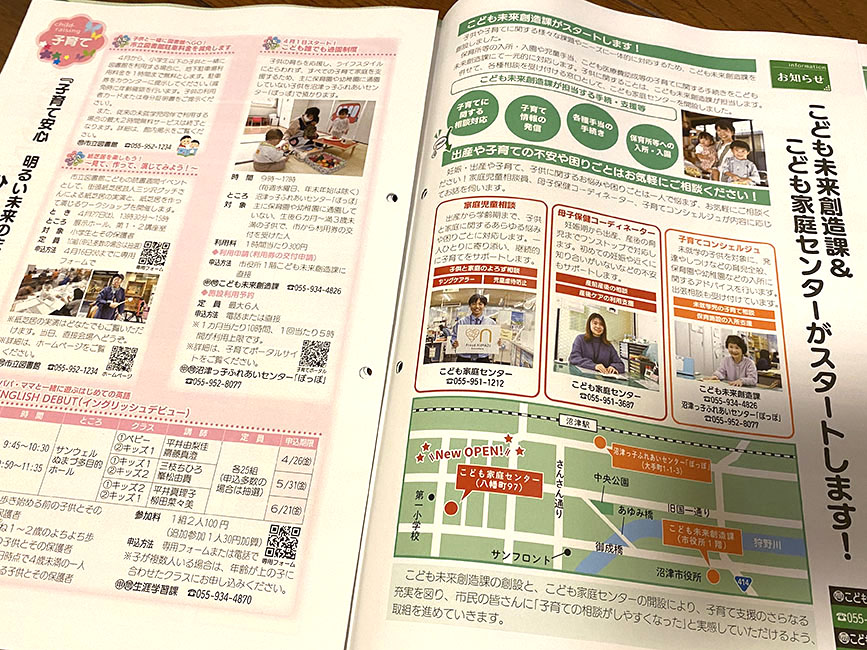 続いて子育てに関する話題が2ページにわたって掲載されています。こども家庭センターがニューオープンするそうです。