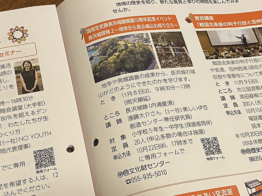 次のページでも長浜城跡の「山城のなりたち」についてのフィールドワーク的なイベントも。沼津市の10月は山推しできてるのでしょうか。