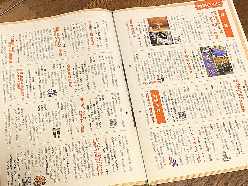 そういえば10月からベースカラーが緑からオレンジに変わるんですよねー。まだちょっと汗ばむ日もあって本格的な秋が待ち遠しいですが、広報ぬまづは秋模様、といったところでしょうか。