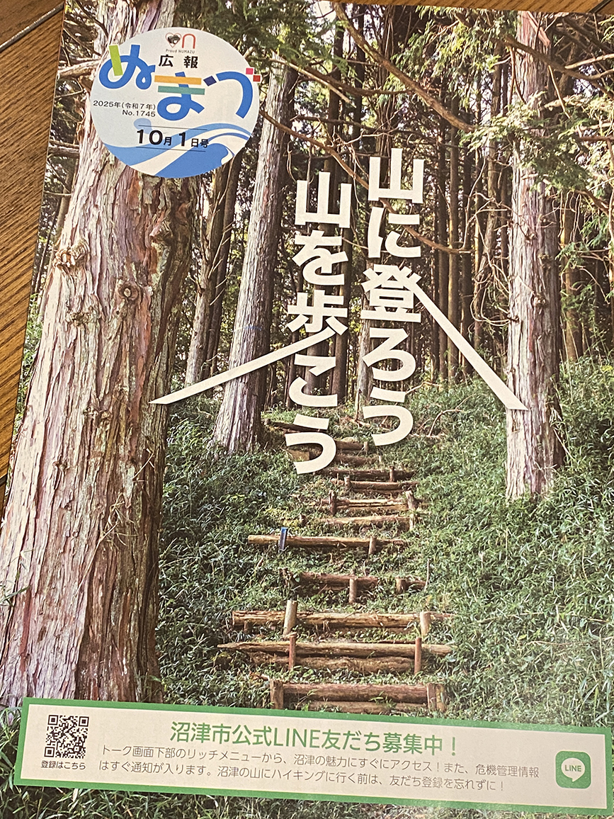 広報ぬまづ10月1日号が発行されました。今回は山登りに誘う表紙の「山登り・山歩き特集」だって。