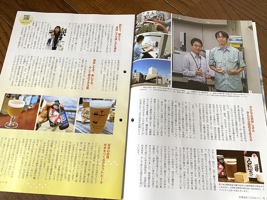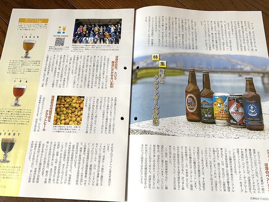 さて、ページをめくるとかのがわ風のテラスに並べられたクラフトビールのビジュアル。爽やかですねー。ここ最近の広報ぬまづは文字量ずっしりで読み応えがすごい気がします。