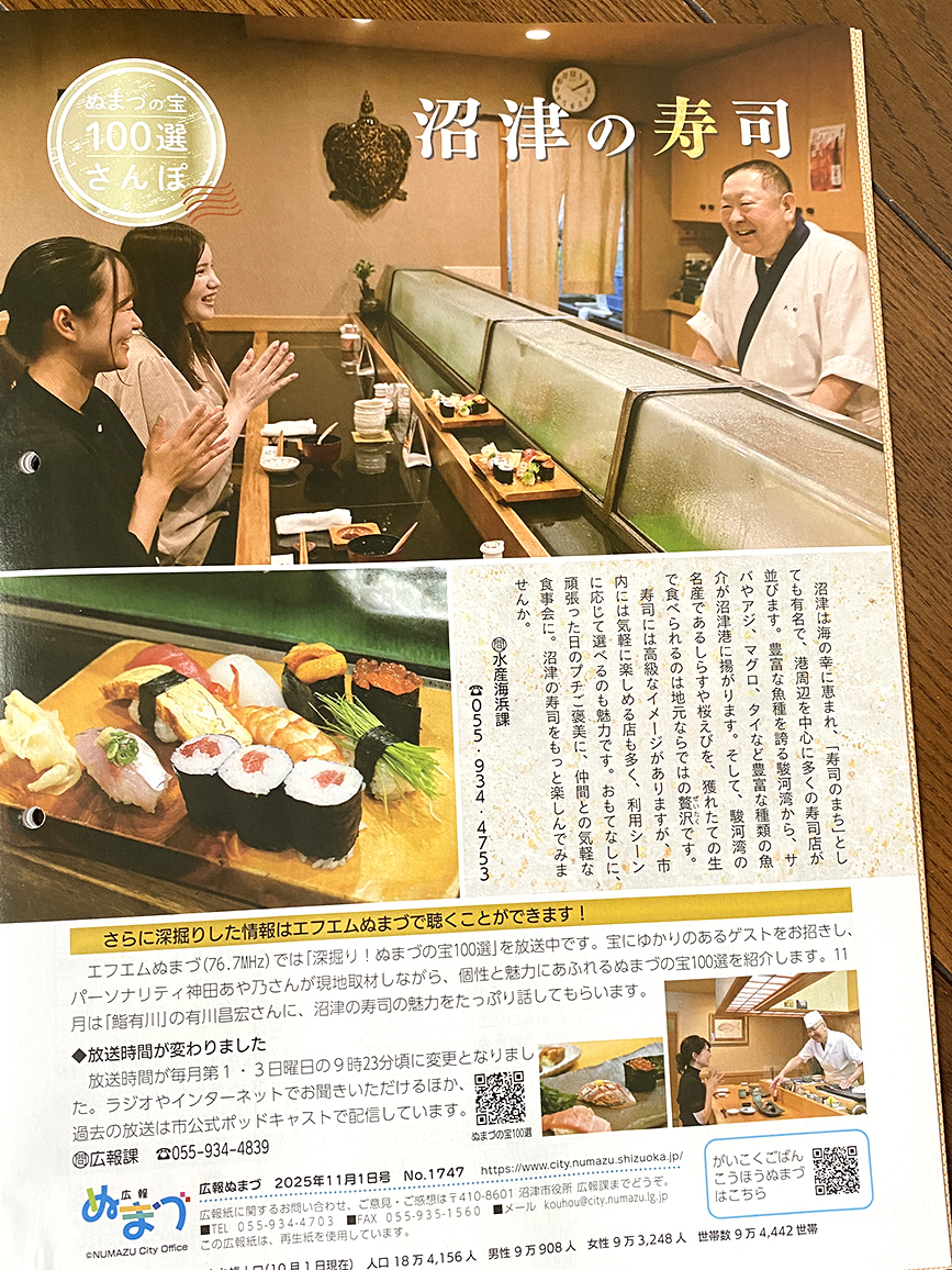 広報ぬまづ11月1日号が発行されました。今年もあと2ヶ月かー。早いなー。