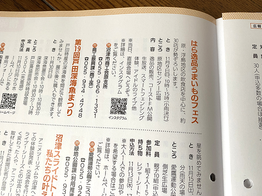 情報ひろばは文字がびっちり、イラストも少なめの6ページ。ここ最近情報量がどんどん増えてきてる気がします。それだけ沼津の話題がいっぱいあるってことか。