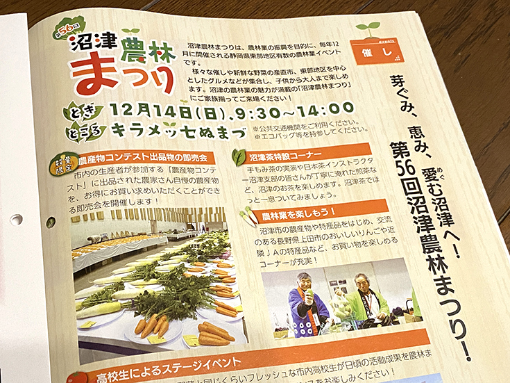 広報ぬまづ12月1日号が発行されました。今年も残りあと1か月。ラストスパートといったところでしょうか。