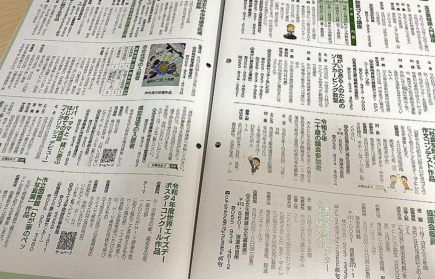 広報ぬまづのルールで、イベント告知や催しの申込みは基本的に、発行日より中7日空いているんだとか。これは、自治会の人たちが広報紙を配るにあたって、だいたい一週間くらいかかるよね、という配慮からこういったルールになっているそうです。知らなかった…。