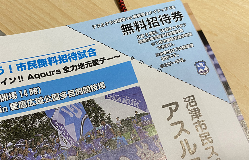 9月3日には、アスルクラロ沼津の【沼津市民スペシャルサンクスマッチ】!!ページの右上には無料券もついてる。