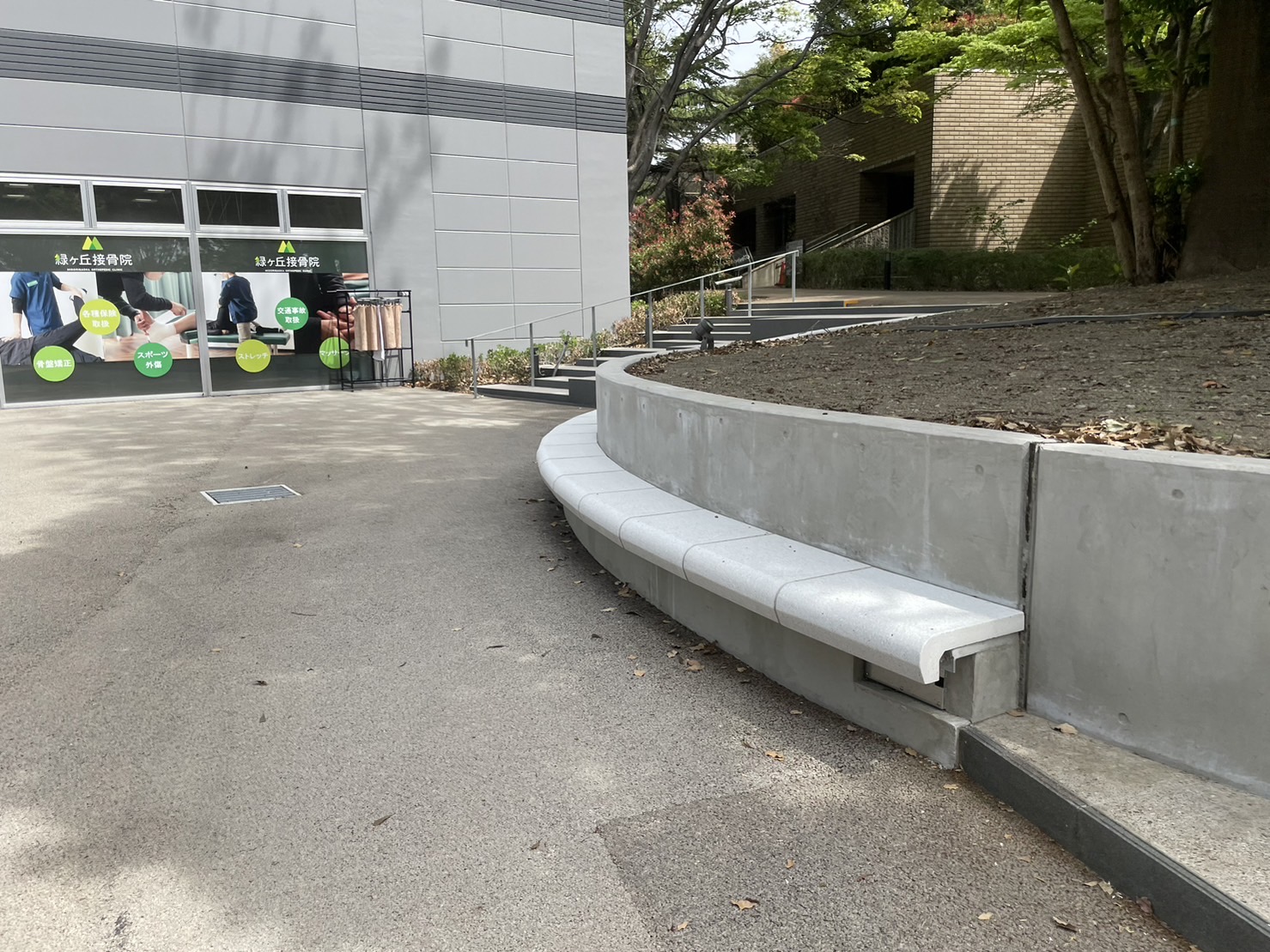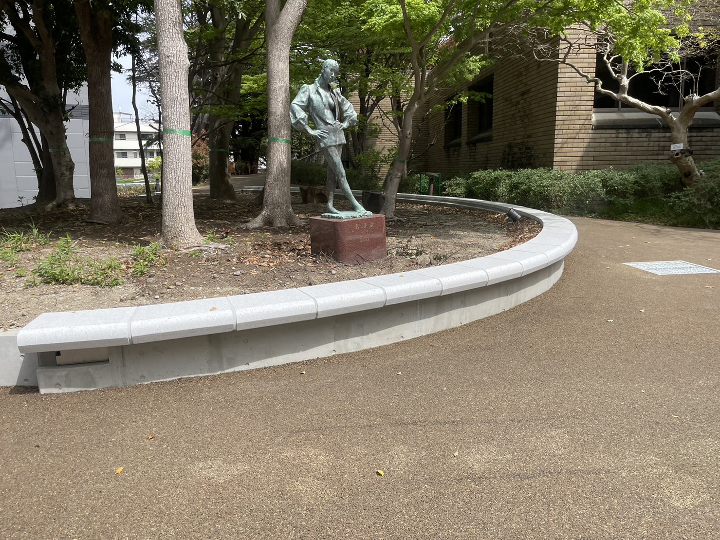 文化センターの前には半円のベンチがあって休憩できる。