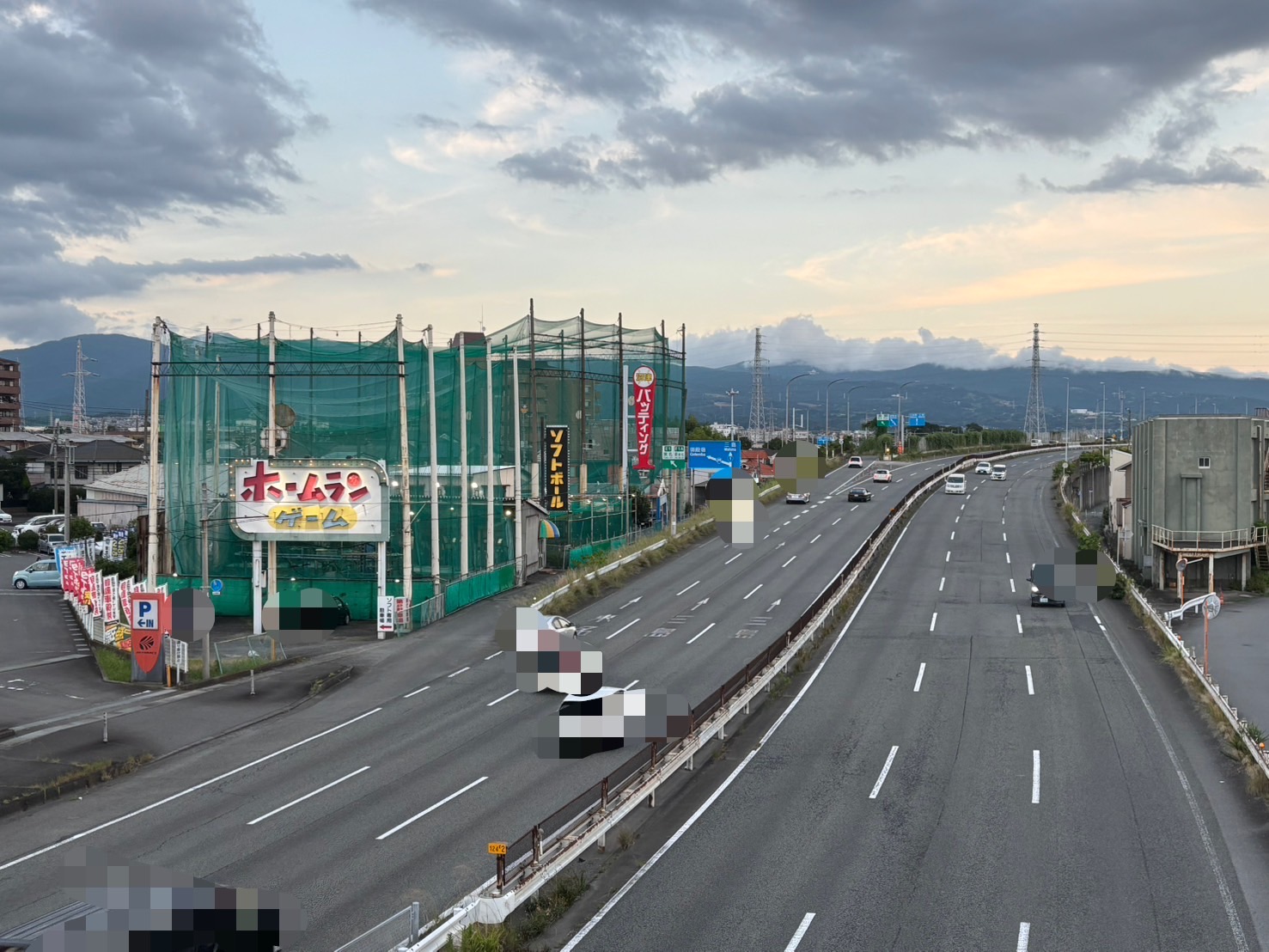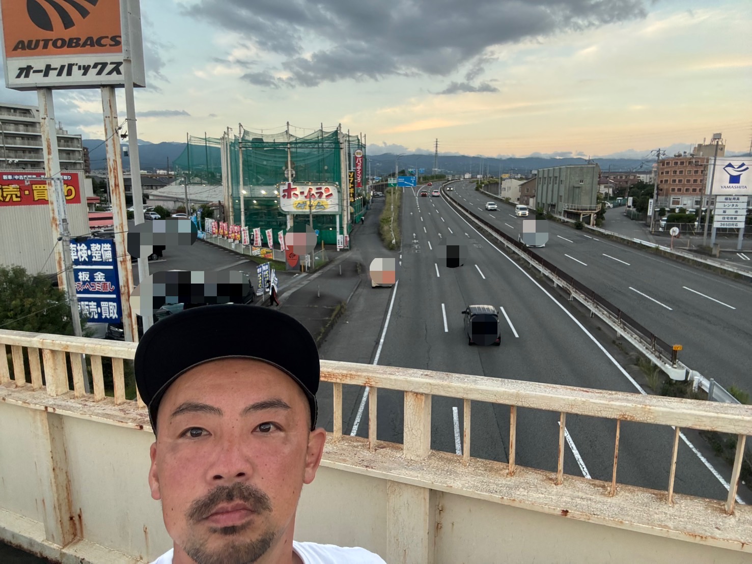 ってことで、最後にバッセンをバックに自撮り。ここで自撮りをすれば、沼津のヒトなら誰が見ても「あぁ、国1のバッセンのところだね!」と言ってもらえるであろう歩道橋。