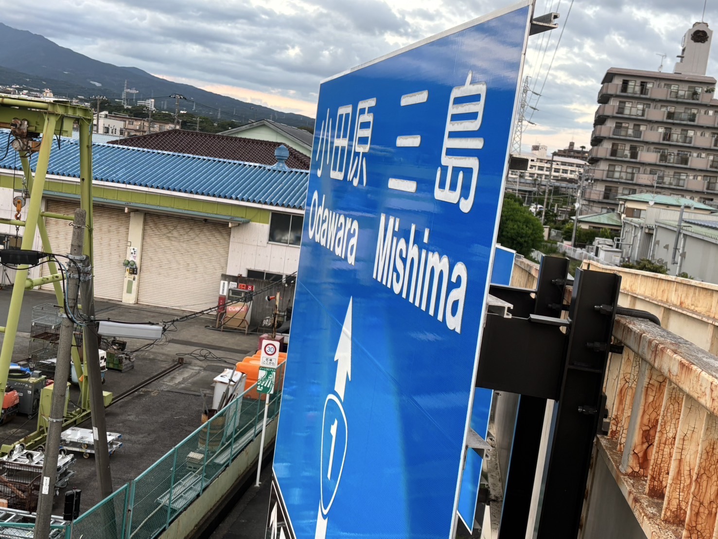 けっこう大事な分岐的なところなので、沼津側にはいろんな青看板が、この緑ヶ丘歩道橋にひっついてる。