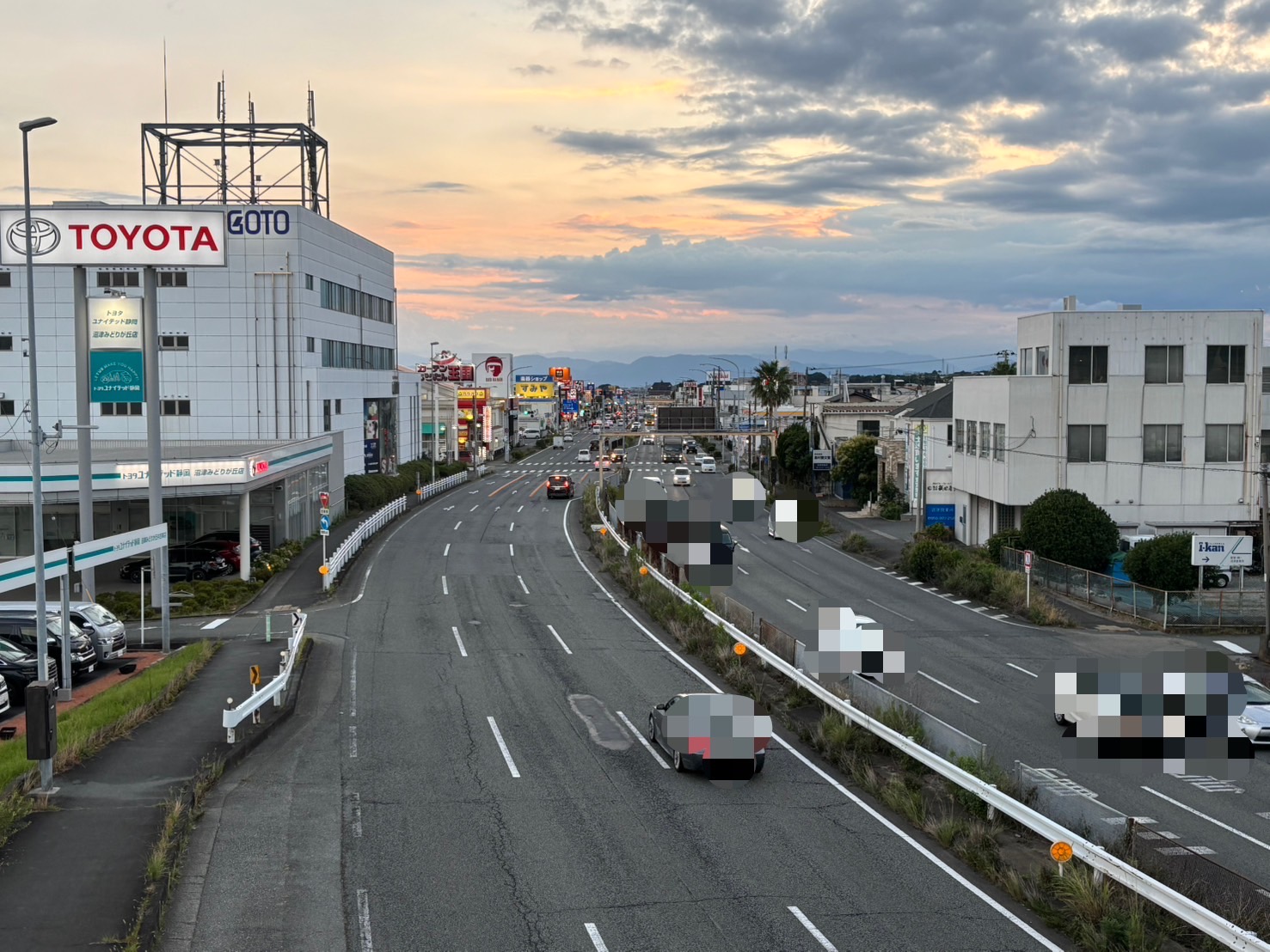 めっちゃ景気いい。昔、メガトンだったカラオケまねきねこも見えるし、すみやもアサヒも見える。バイクのレッドバロンと、その奥の快活CLUBも見えつつ、「その奥の山脈はどこだろ?」ってとこまで見えてて、景色最高。