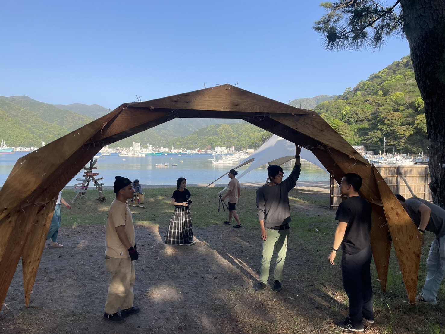 戸田から見る夕日は、ほんとにきれい。あしたの戸田フェスの準備もしていたよ。(沼津市戸田)