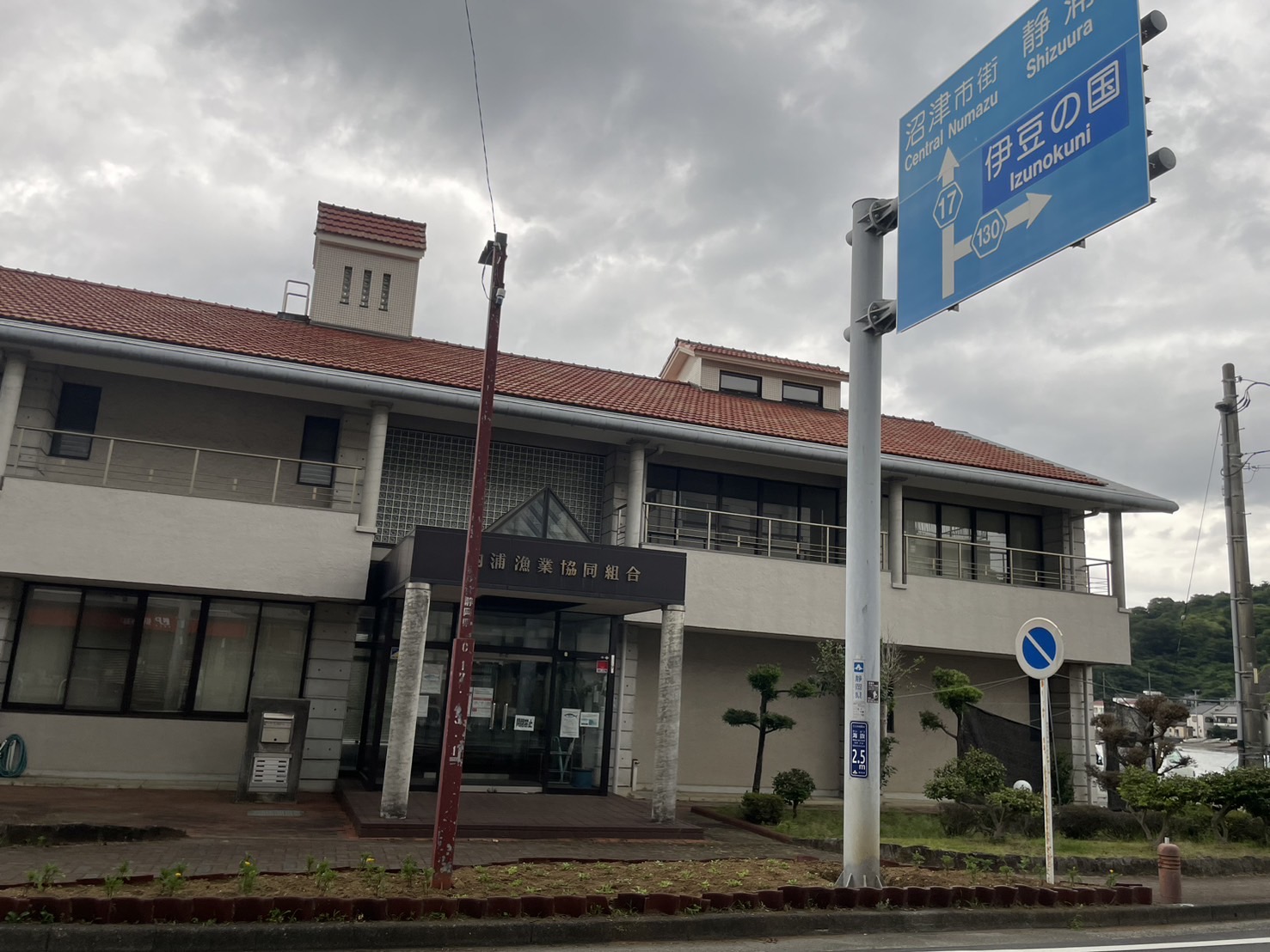 道路の向こう側には内浦漁業協同組合がある。