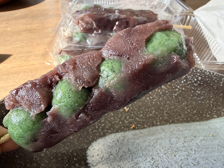 お団子はあんこがびっしり。よもぎの香りがさっぱりしててうまい!