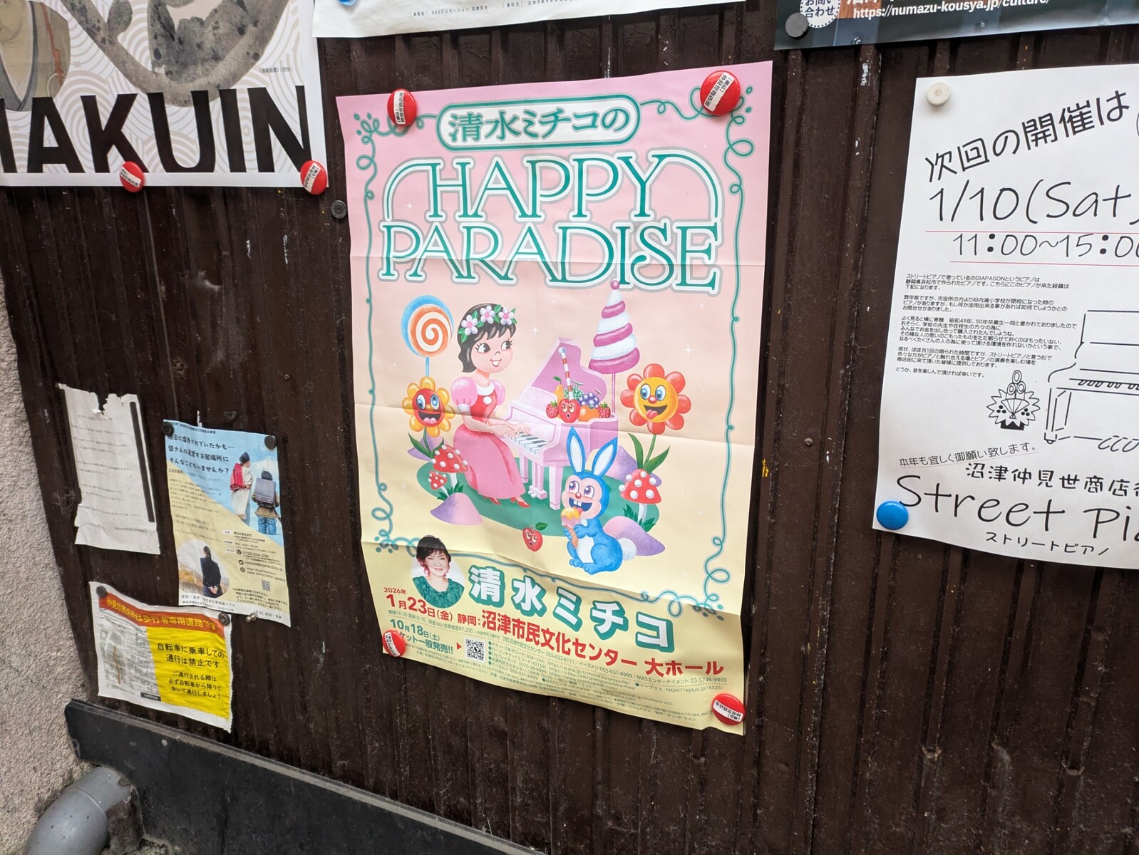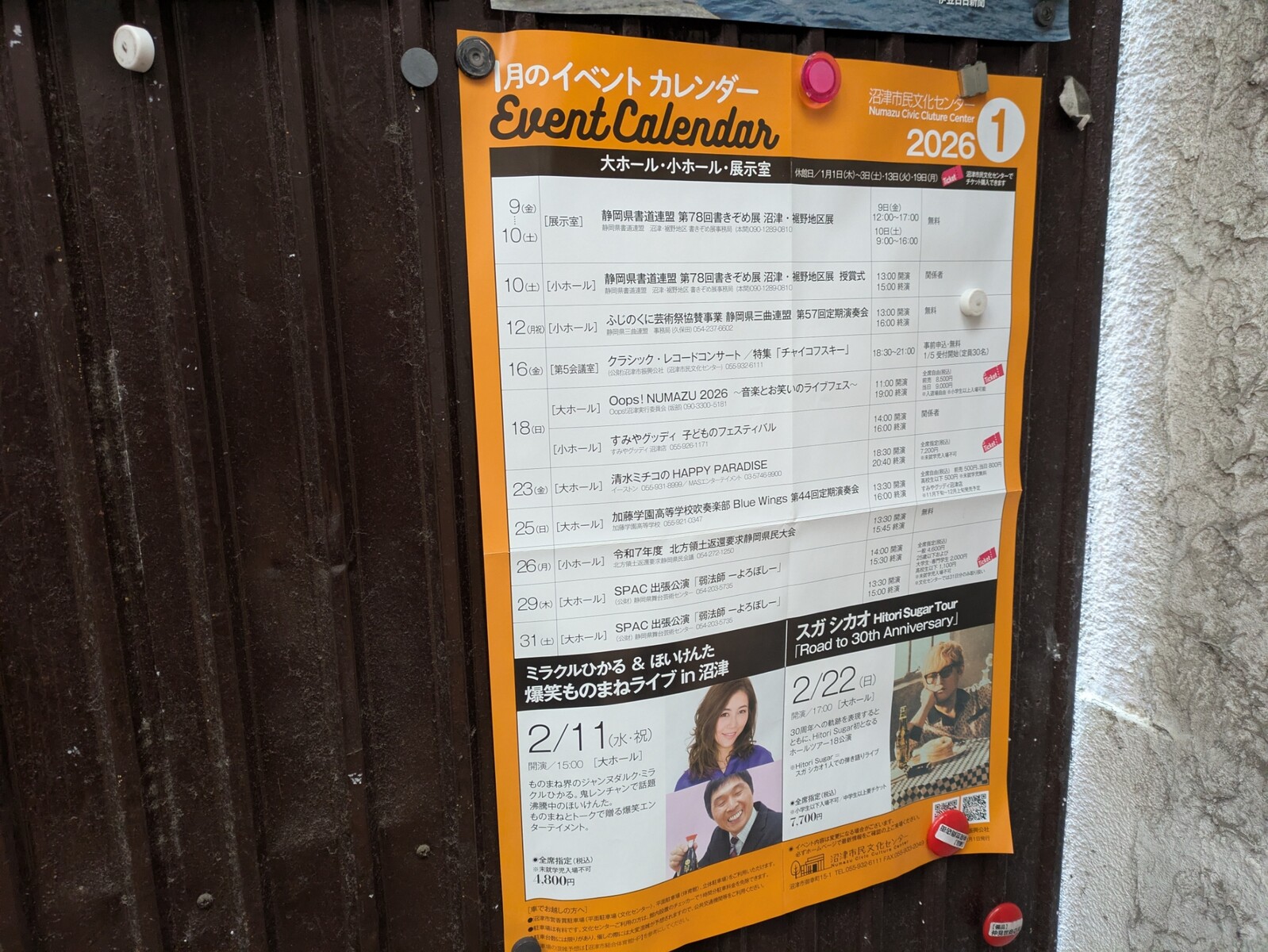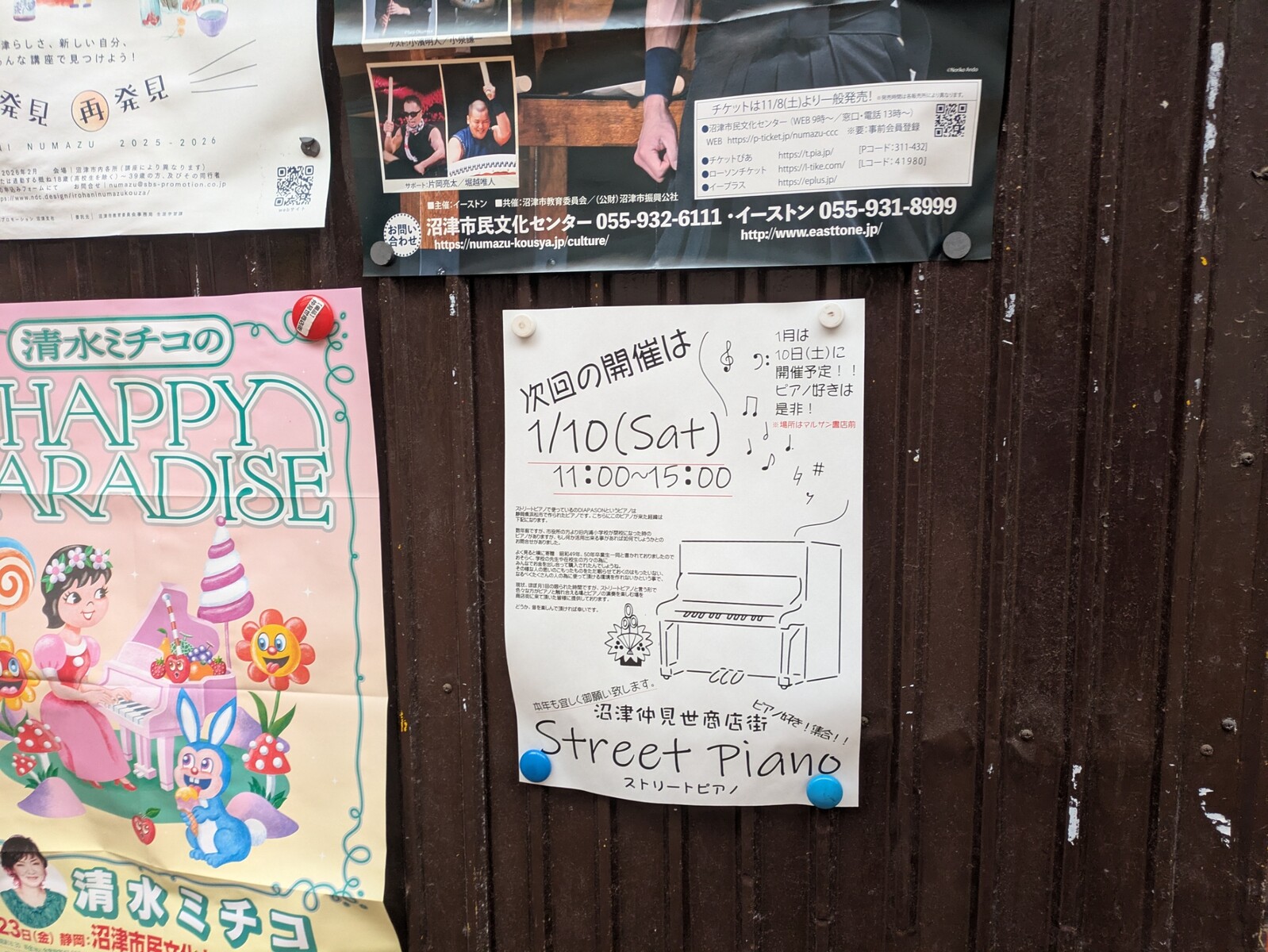 沼津のまちのいろんなイベントカレンダーとか、たくさん告知をしてくれていました。
