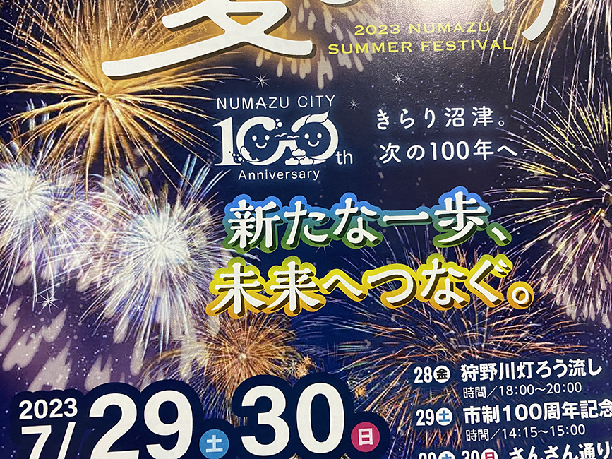 まちなかでは夏まつりポスターも見かけるようになってきました。市制100周年記念の年に開催される第76回沼津夏まつり・狩野川花火大会まであと2週間ちょっと!そろそろどうやって夏まつりを楽しむかウォーミングアップをしたいですね!