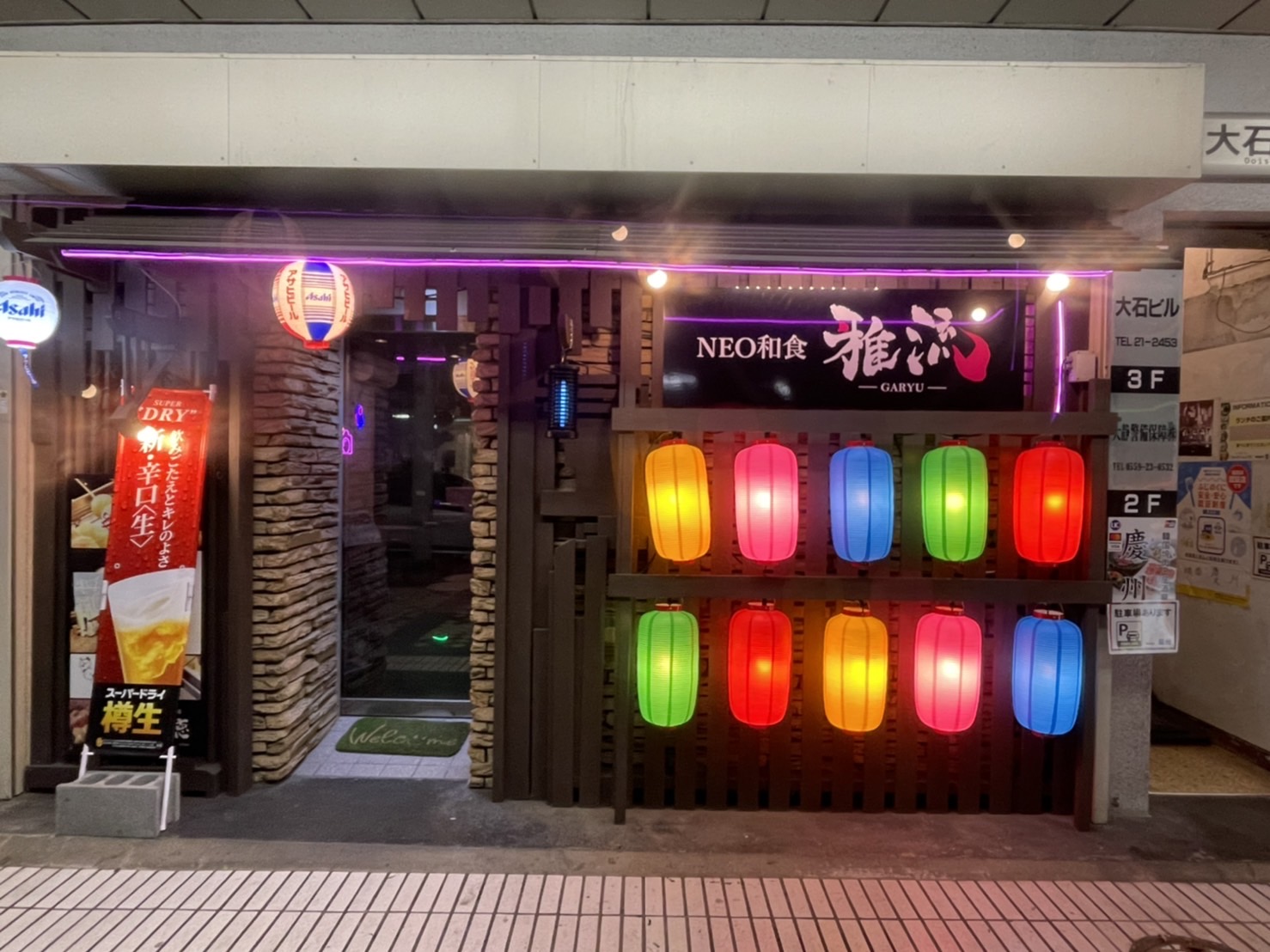 NEO和食雅流の提灯が・・・めっちゃカラフル!