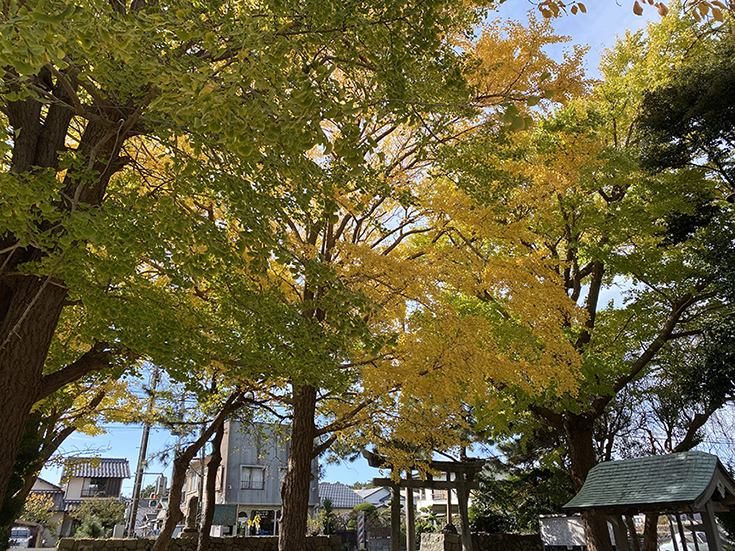 西間門八幡宮のイチョウがきれい。もう少ししたらピークっぽい。(沼津市西間門)