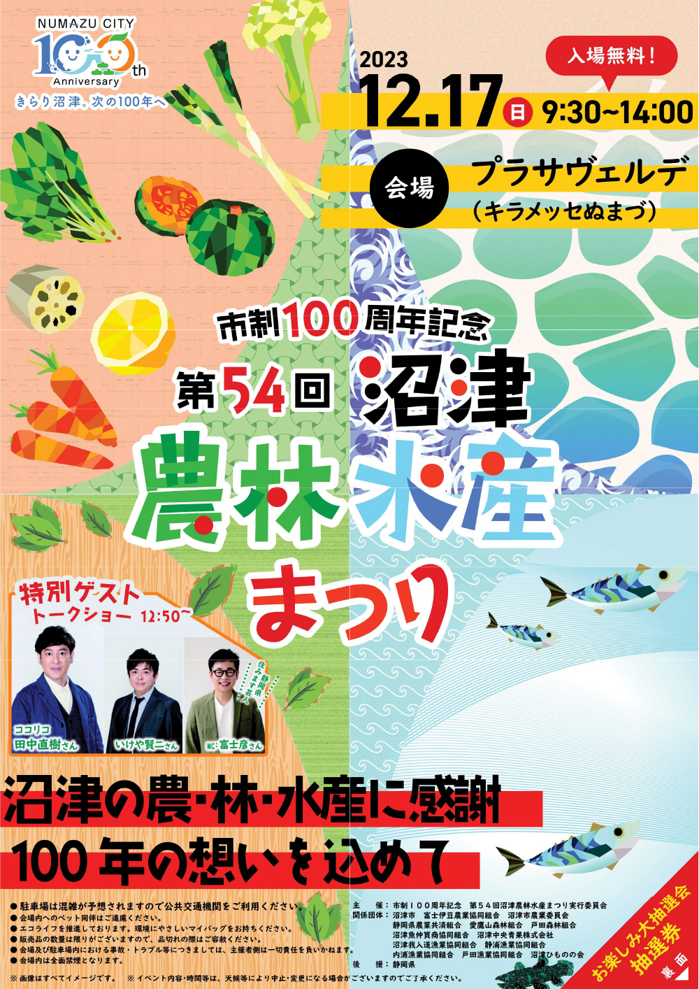 沼津の一次産業を楽しもう!市制100周年記念の農林まつりに水産がプラスした「農林水産まつり」はあした12月17日開催。