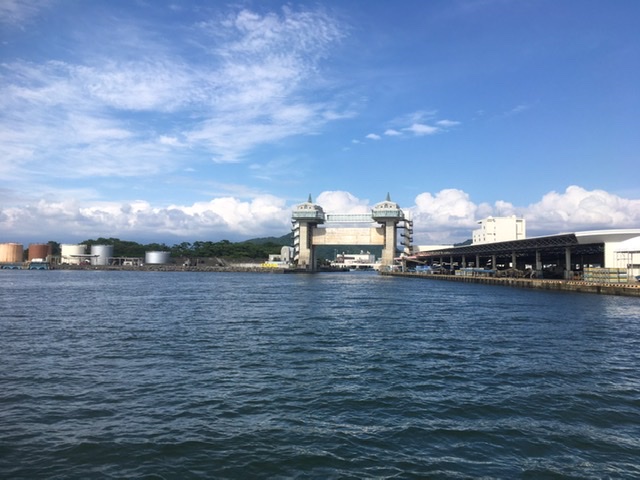 船上から沼津港の方をみるのはいつもと違う風景でたのしい。