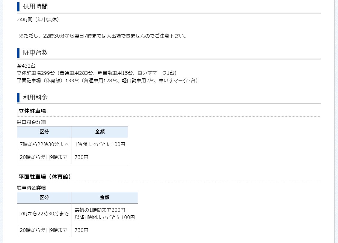 あと【供用時間24時間(年中無休)】って書いてあったんだけど、【※ただし、22時30分から翌日7時までは入出場できませんのでご注意下さい。】だそう。24時間営業だからいつでも出せるぜ!と、思わないように気をつけておいたほうがいい。