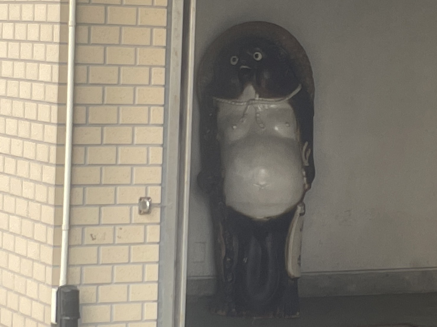 こっち見てる、たぬき。置物に意味があるの知らなかった。(沼津市大手町)