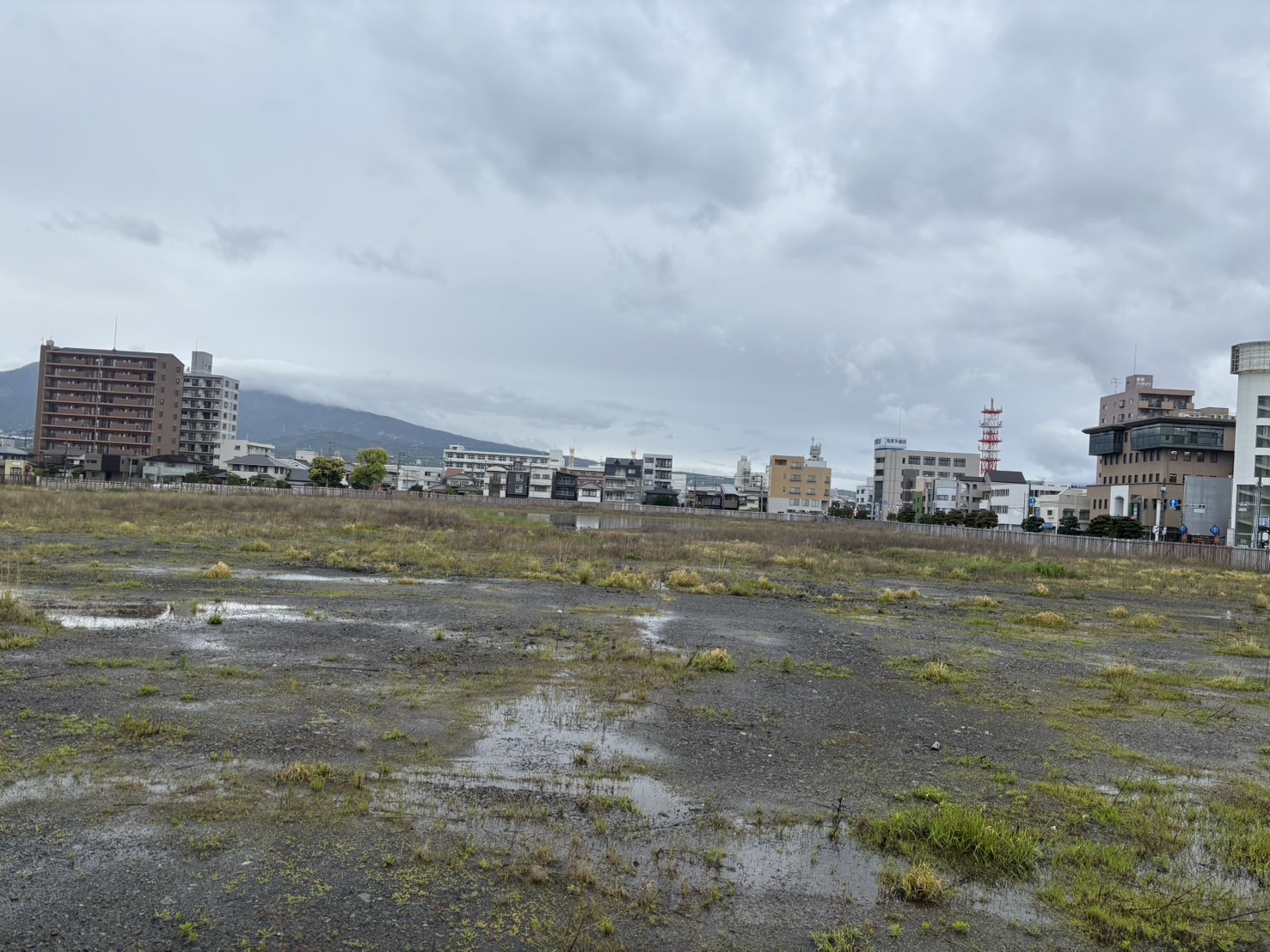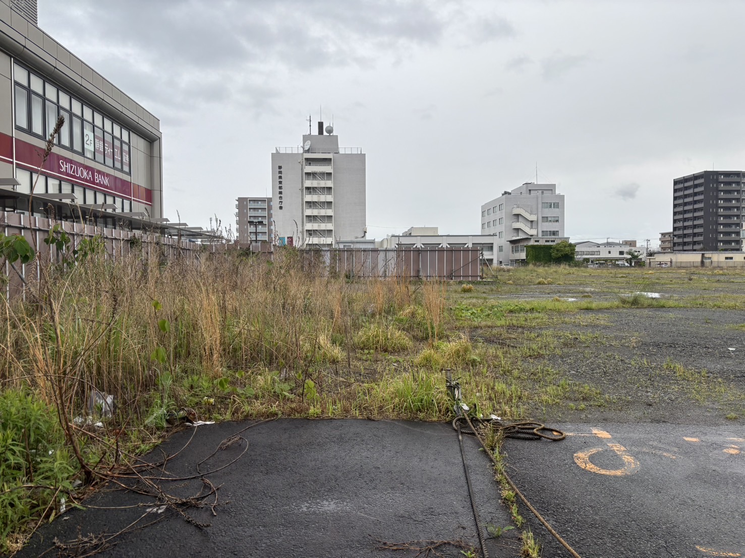 と、いうことで、ヨーカドーだったところをのぞいてみると、特に変わっている様子はなかった。 きょうの沼津はちょっと涼しめ。半袖短パンだったお休みが嘘みたいに、肌寒い。富士山は、雪がまだ残ってるのかな。ここからだと、富士山が良く見えるんだけど、今日は曇ってる。駐車場のほうから腕を伸ばして写真を撮ってみたら、こんな感じ。子どもの頃、木下大サーカス?とかが、学園通りのいまのストリートスポーツパークらへんにも来ていた記憶があるけど、商業施設ができる前に1回ぐらいここで公演していただけないかしら?ってぐらい広い。 2025年5月6日(火)のイシバシプラザ跡地の様子
