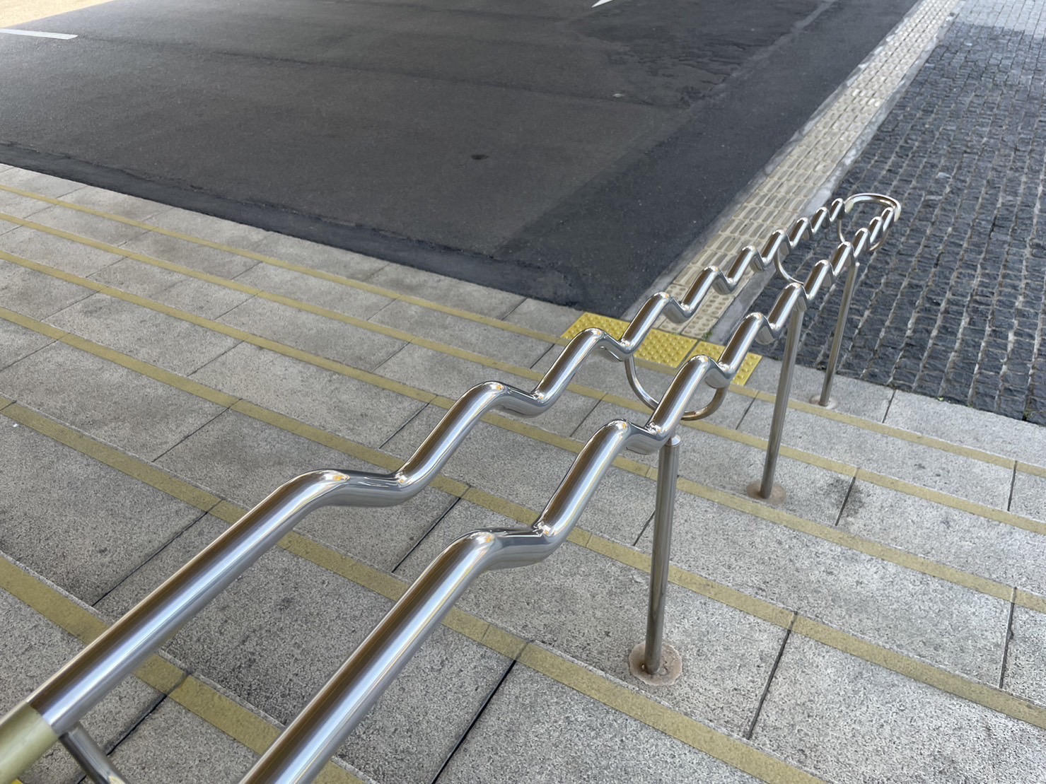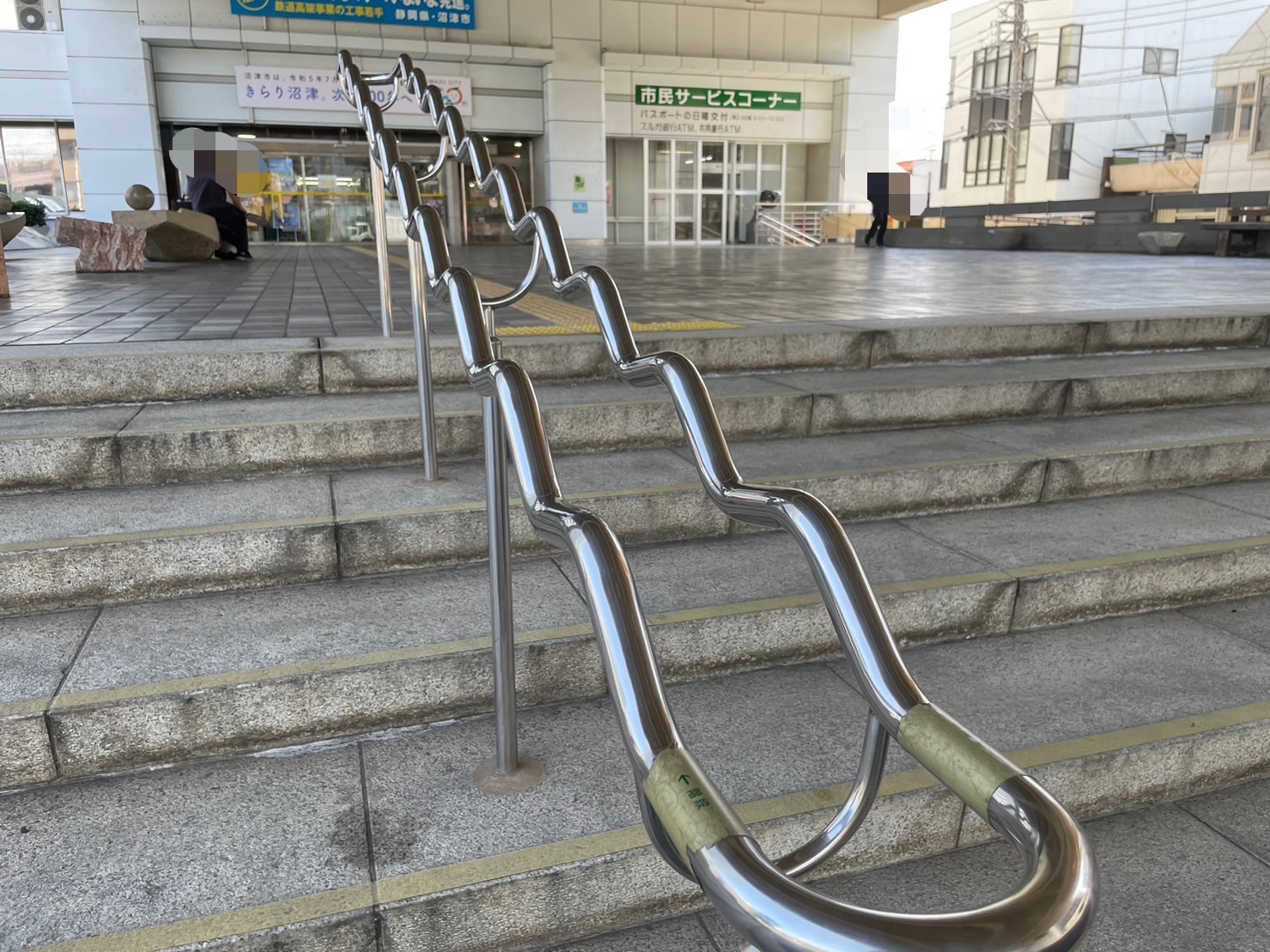 くねくねには意味があった。市役所の階段のところにある手すり。(沼津市御幸町)