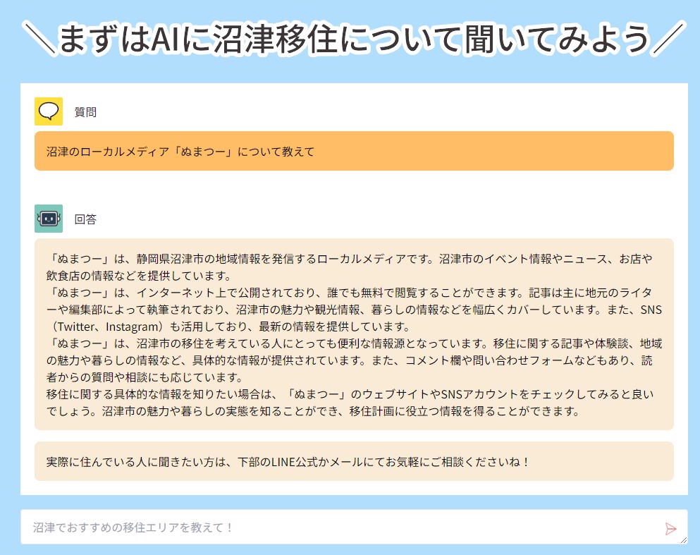 沼津市の移住・定住ポータルサイトがリニューアルしてる。イジュウチャットはメンテナンス中。