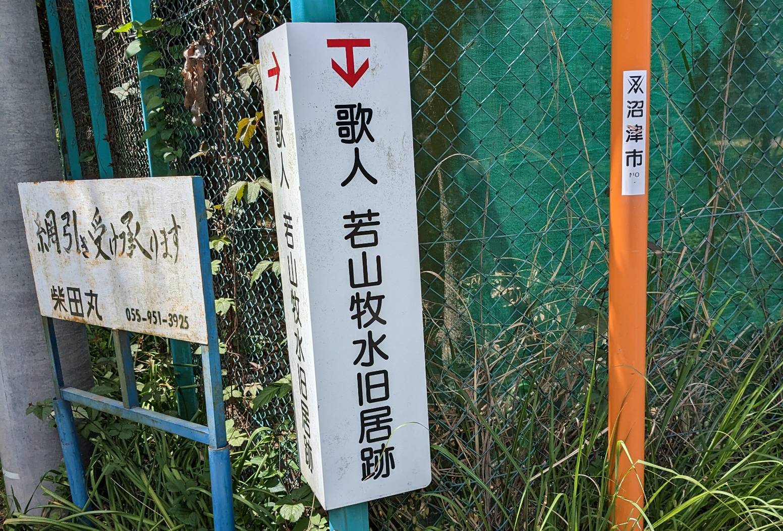 「か」からはじまる看板がなかなか見つからなくて、歩き続けて千本浜付近まで来てた。やっとみつけた歌人若山牧水旧居跡。