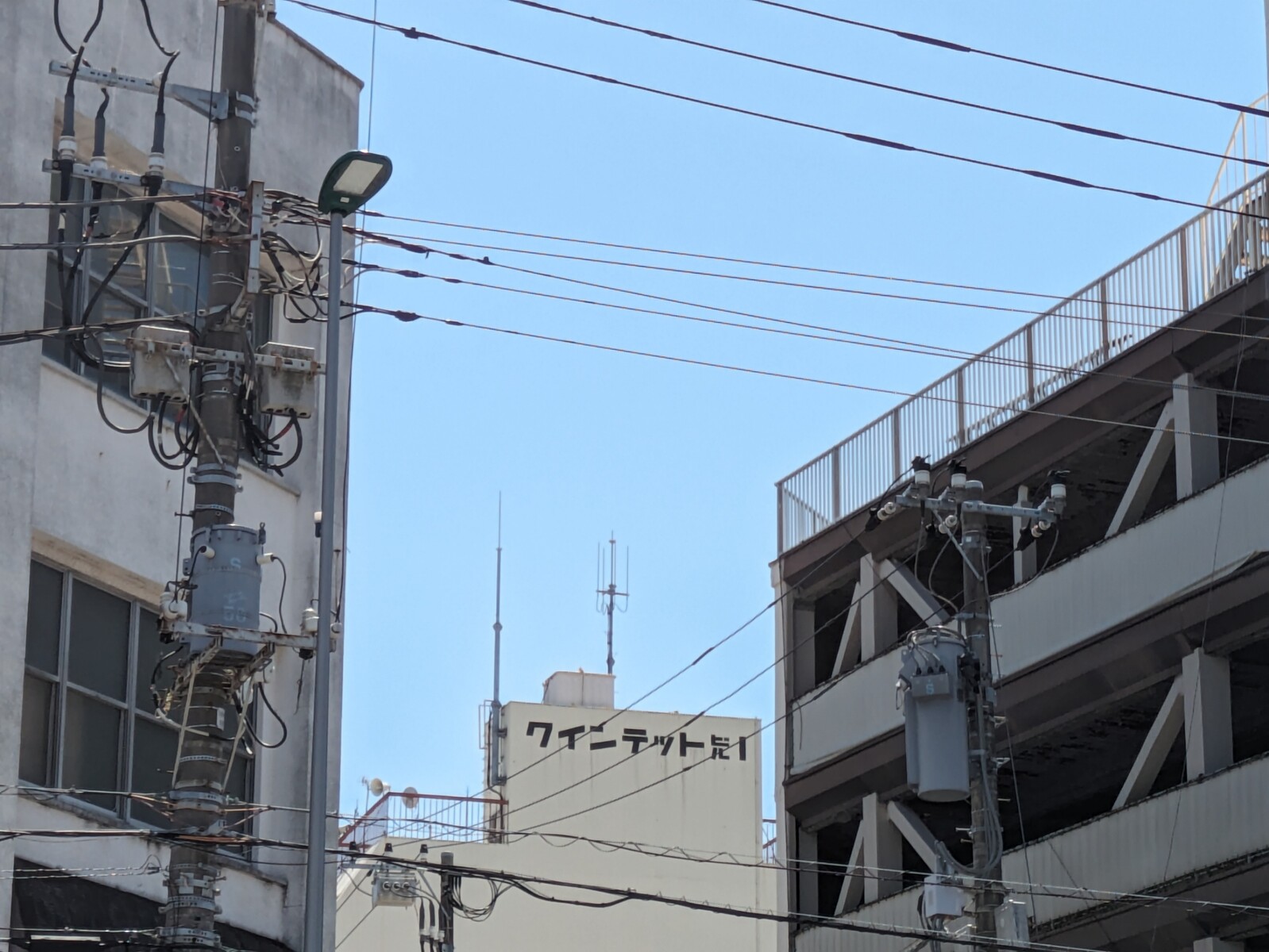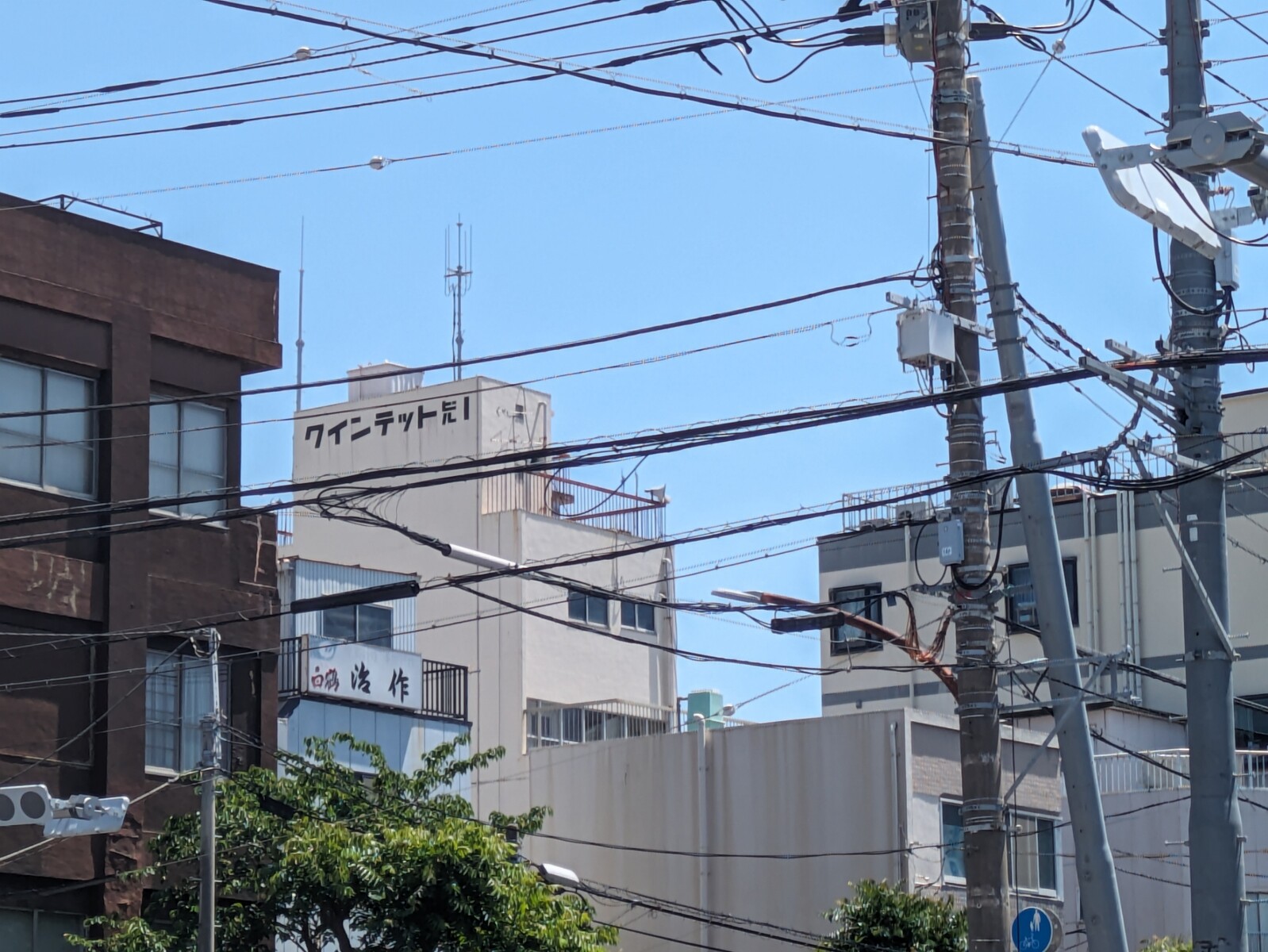 周辺の大きなビルたちに負けじと、威風堂々そびえ立っててかっこいいぞ、クインテットビル。なんのビルかはわからないけれど。