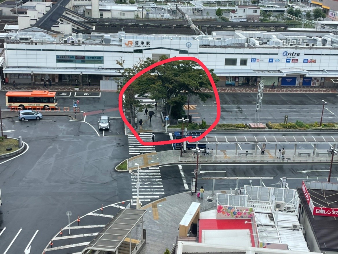 沼津駅南口ロータリー。沼津ラクーンから見るとこんな感じ。