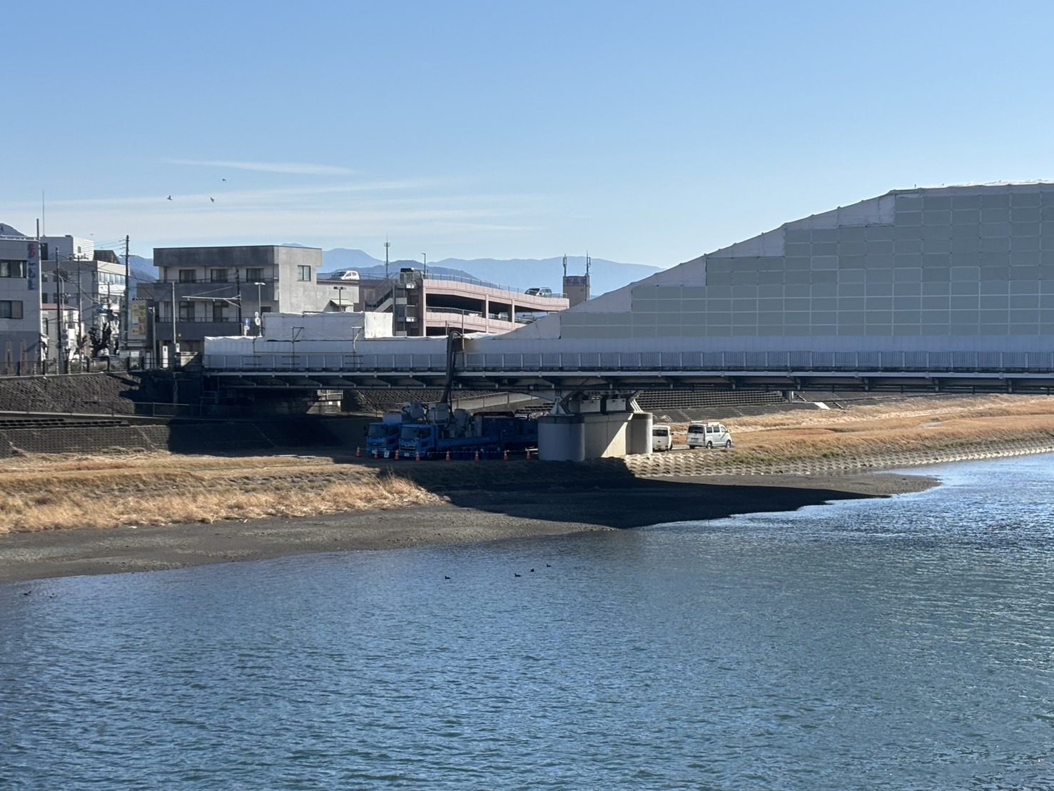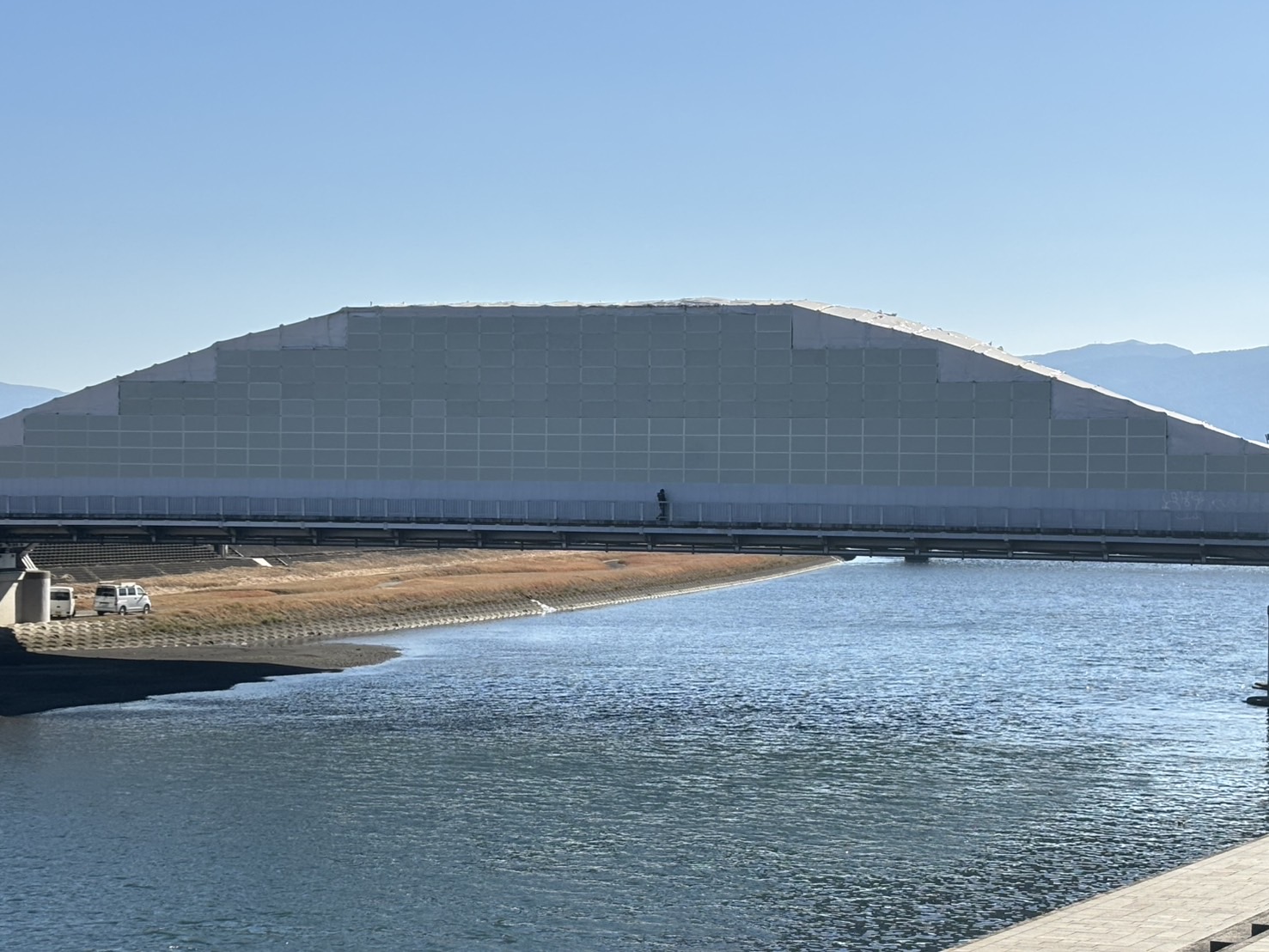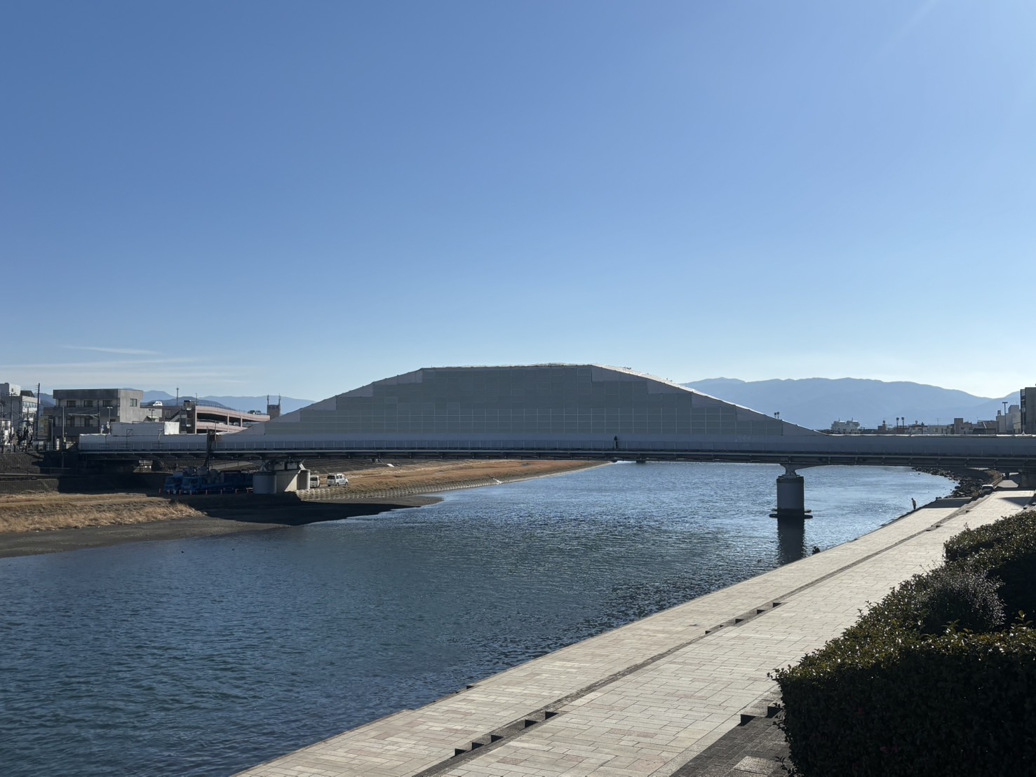 沼津市ホームページを調べてみたら、上流側のアーチ塗装工事は、来年令和8年5月ごろまでやるみたいで、交通規制とかする期間もあるみたい。