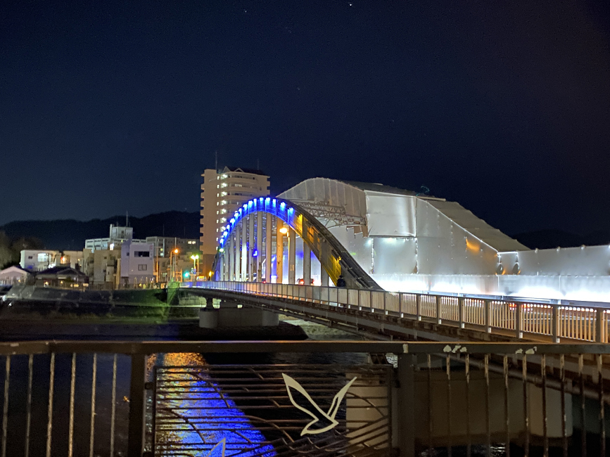 御成橋の周辺では年末くらいから、かのがわ風のテラスの柵にもイルミネーションがついています。御成橋の照明に加えて、イルミネーションの灯りも狩野川に映り込んでいていい雰囲気。デートにもいいかも。