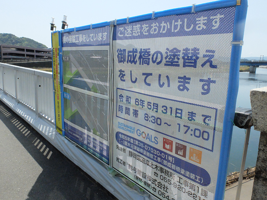 5月31日まで、御成橋が塗替え工事中。