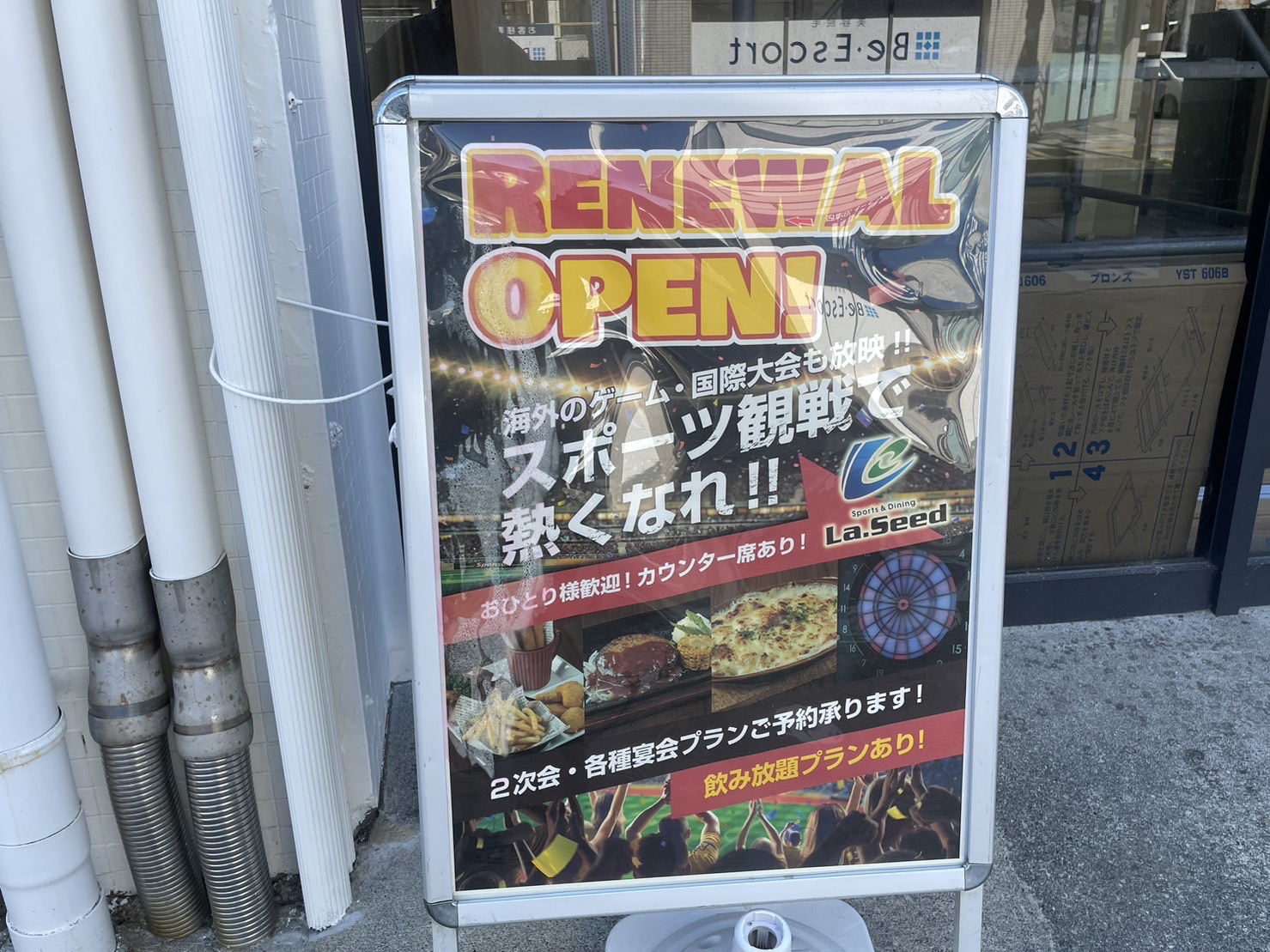【移転予定】南口の「Sports&Dining La.Seed ラシード」が北口にリニューアルオープンするみたい。移転後もダーツはできるのかしら。(沼津市高島町)