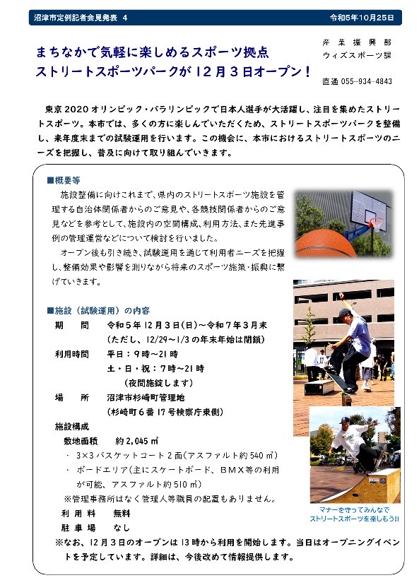 施設構成敷地面積 約2,045㎡・ 3×3バスケットコート2面(アスファルト約540㎡)・ ボードエリア(主にスケートボード、BMX等の利用が可能、アスファルト約510㎡)※管理事務所はなく管理人等職員の配置もありません。