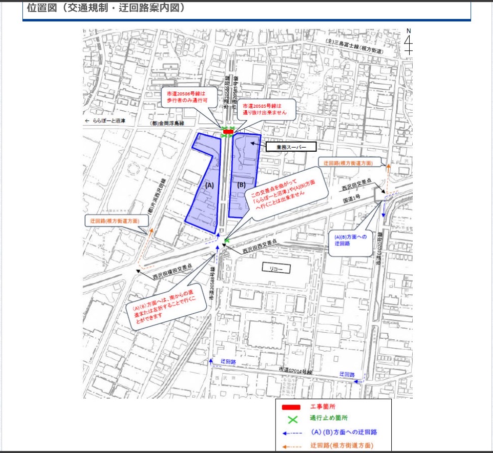沼津市西沢田西交差点付近に