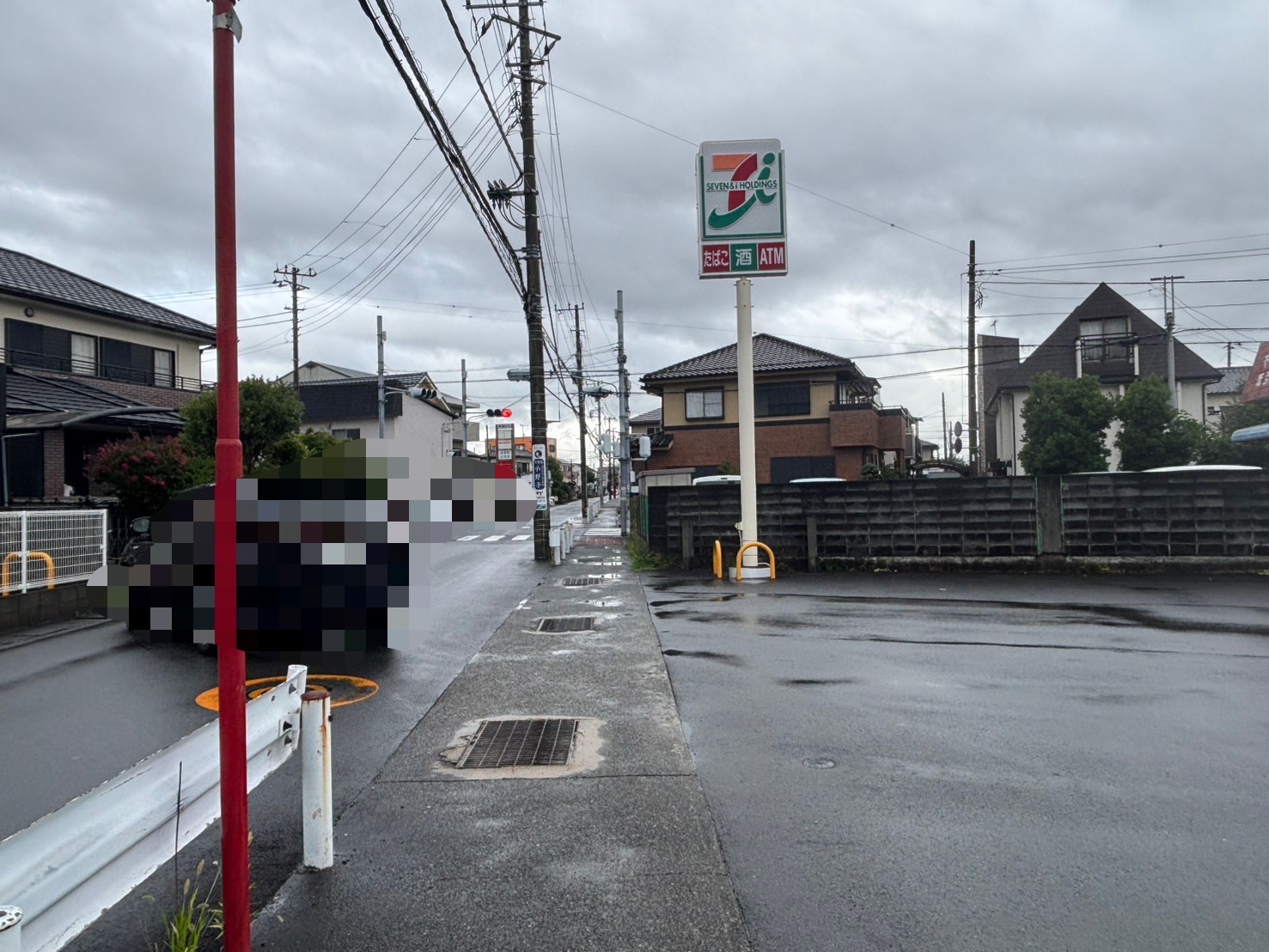 雅心苑金岡店を結ぶ道のあいだのセブンイレブンの前に、