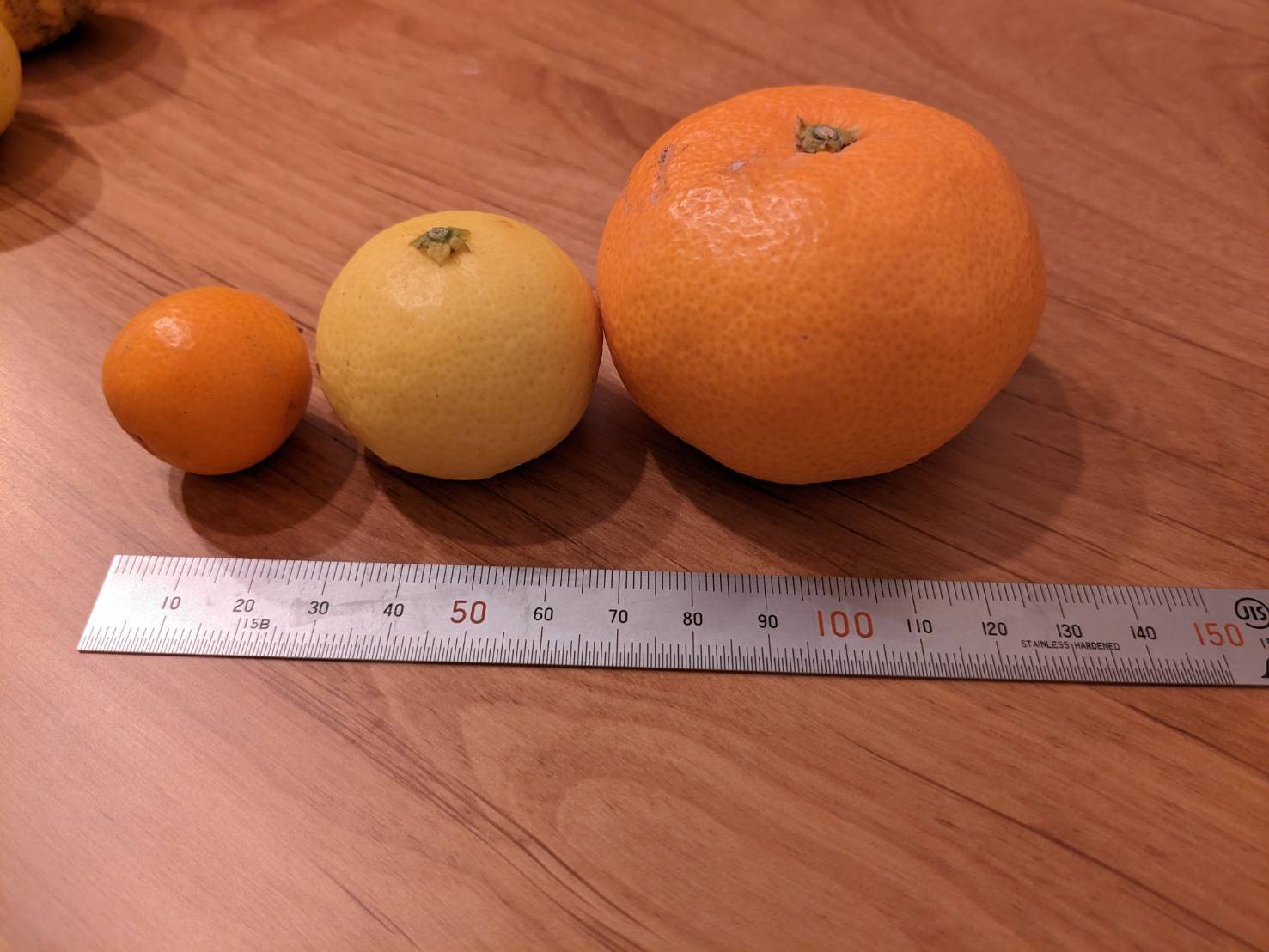一番左から、金柑、黄金柑、寿太郎みかん