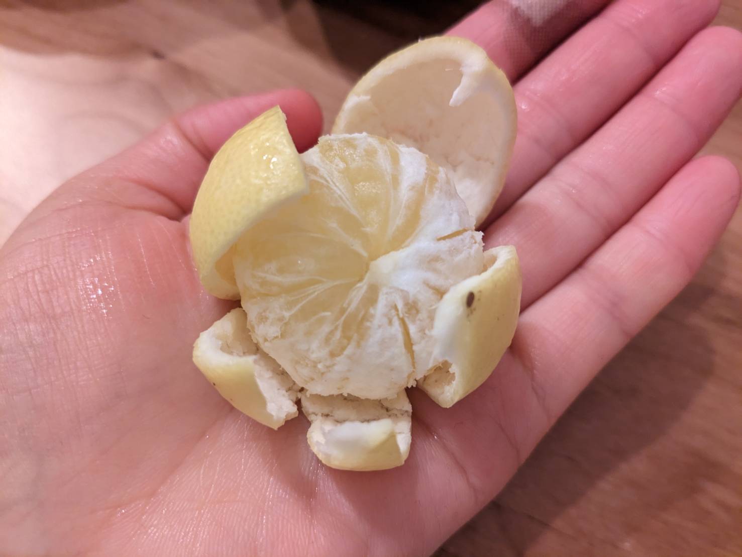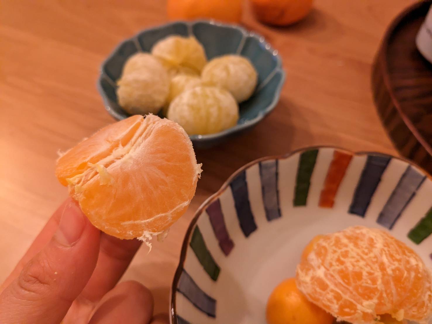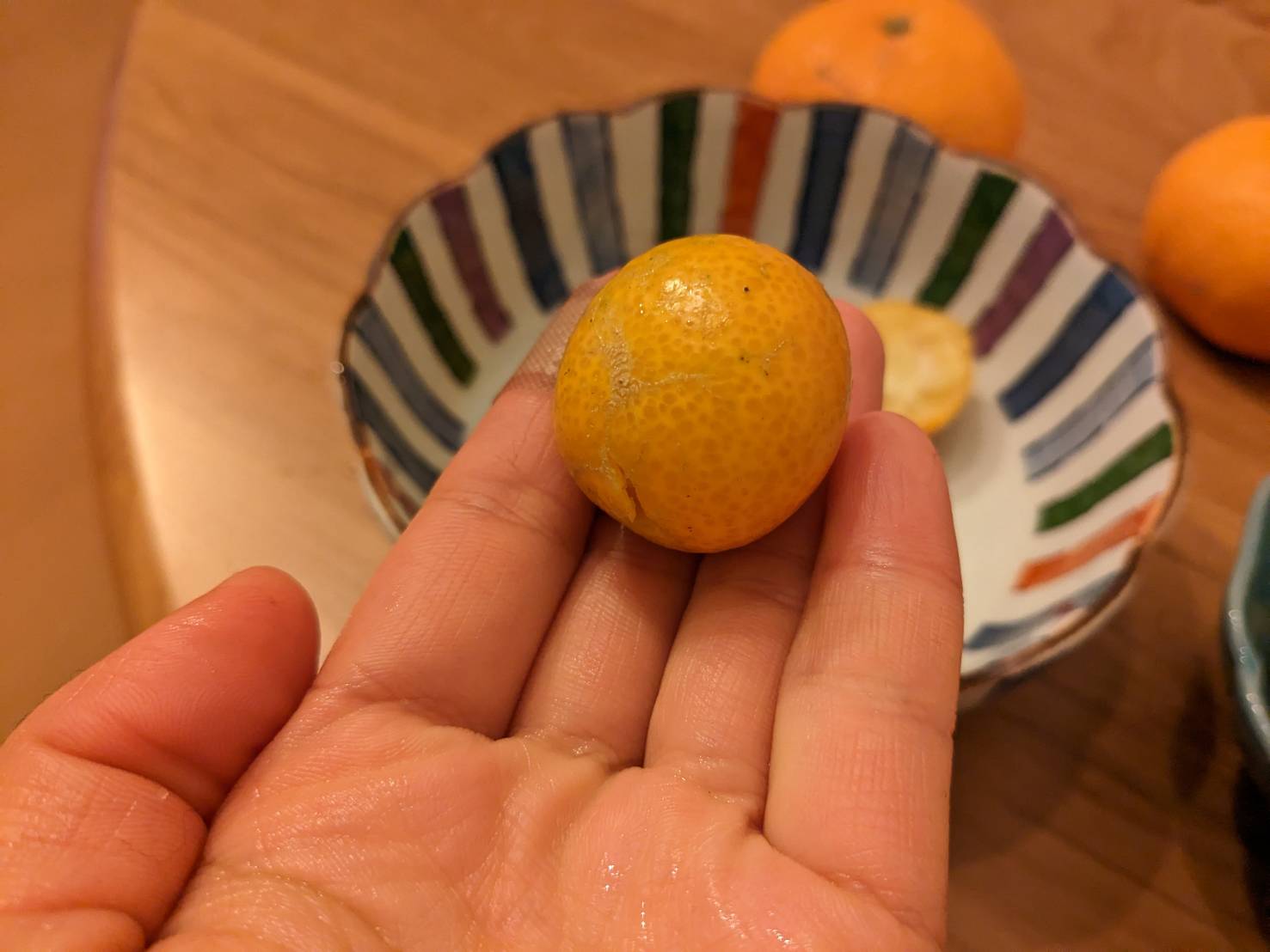 手のひらサイズでとってもかわいい。金柑よりもひとまわり大きくて、皮を剥いてみると本当に小さなみかんって感じ。