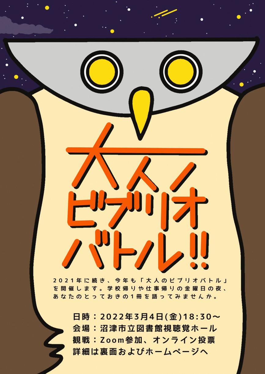 そして、春を迎える3月4日にはその名も「大人のビブリオバトル」が開催される模様!小中学生の大会とは違って、18時30分から20時までという大人な時間に開催されるそうなので、なんならお酒を飲みながら参加(観戦)することもできちゃいます!!