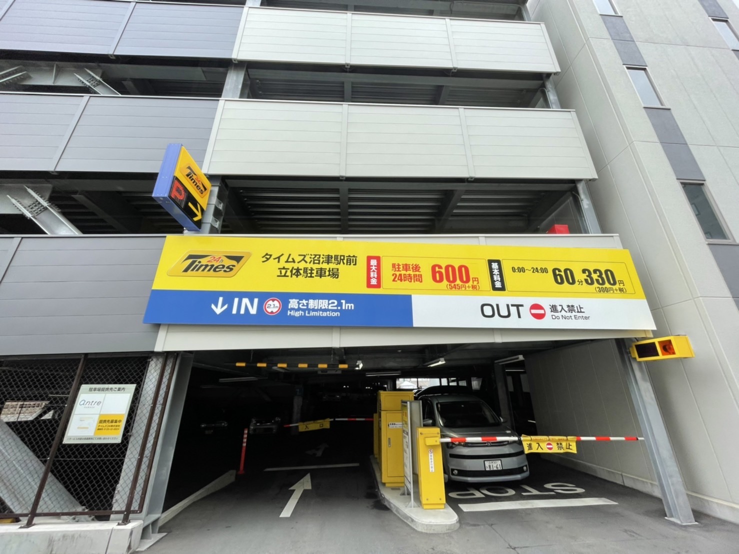 【沼津駅周辺駐車場】最大料金24時間600円。沼津駅南口改札まで徒歩5分以内で便利。【タイムズ沼津駅前立体駐車場】