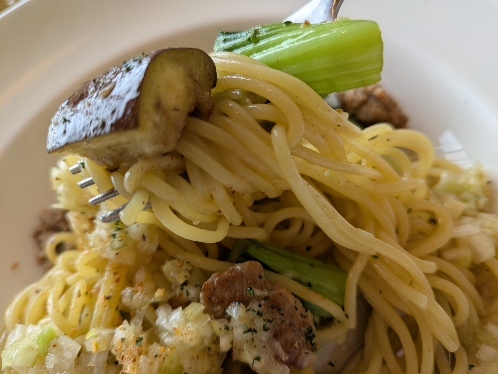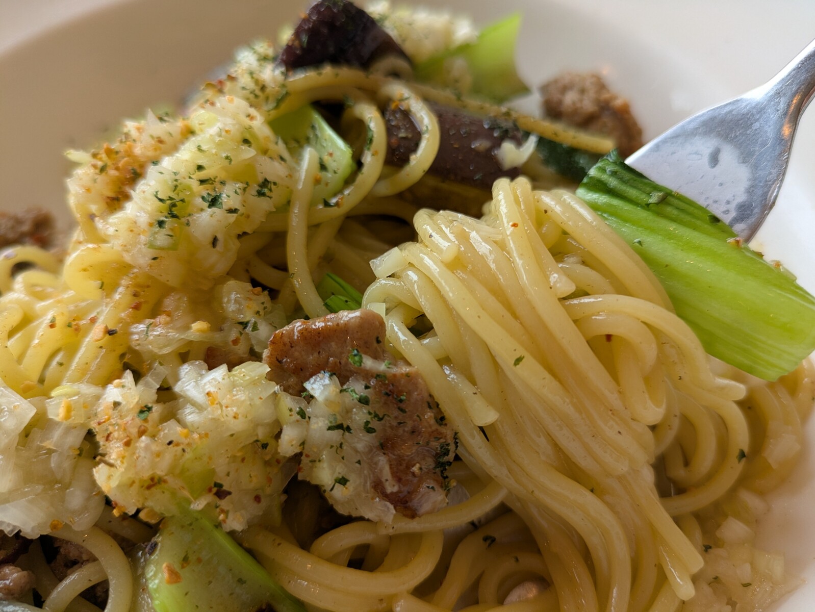 メニューの下に、「ガッツリ食べたくなる」って書いてあったけれど、たしかに、肉!野菜!ってかんじの、めちゃくちゃガッツリ系のパスタで大満足でした。