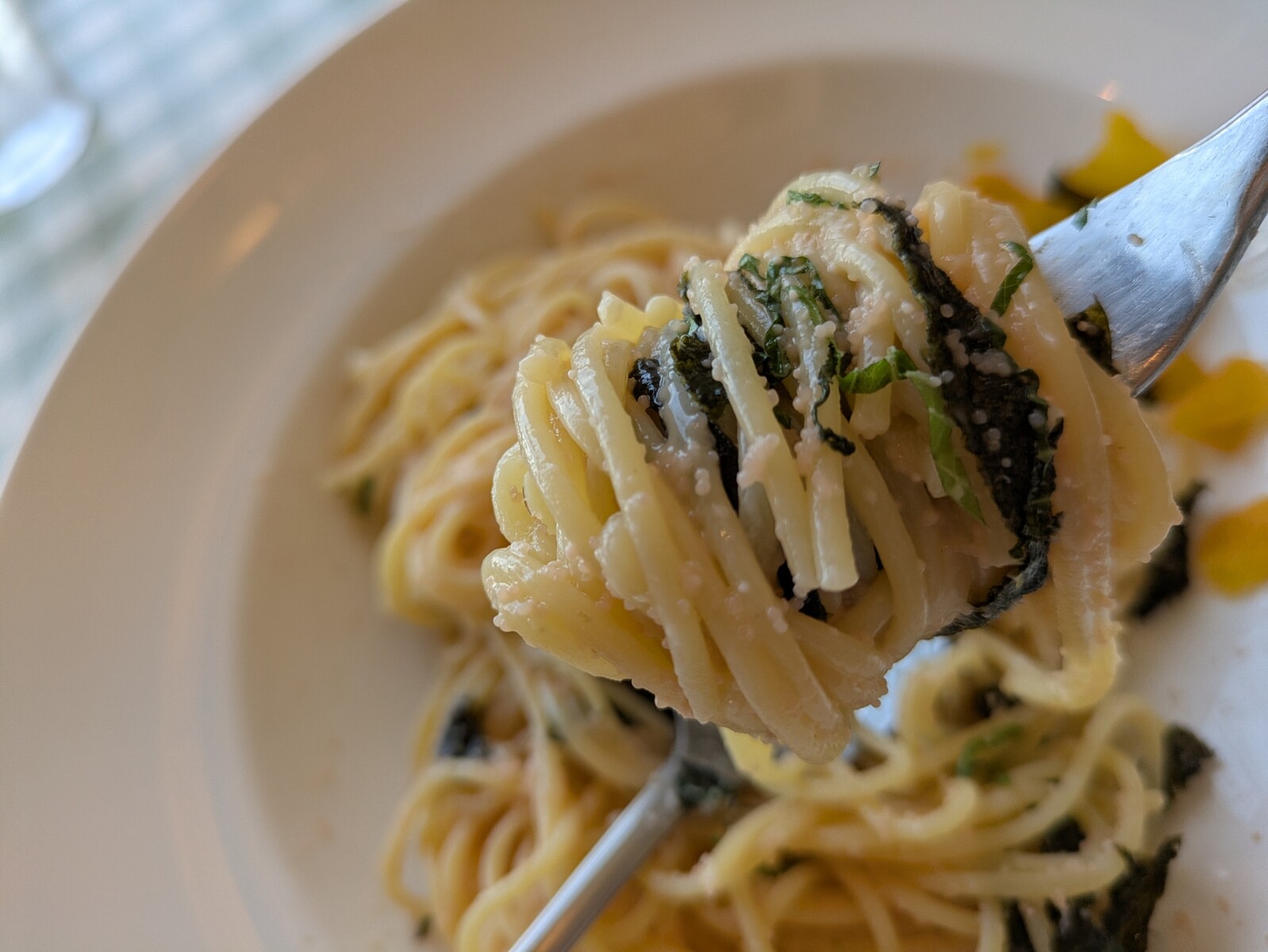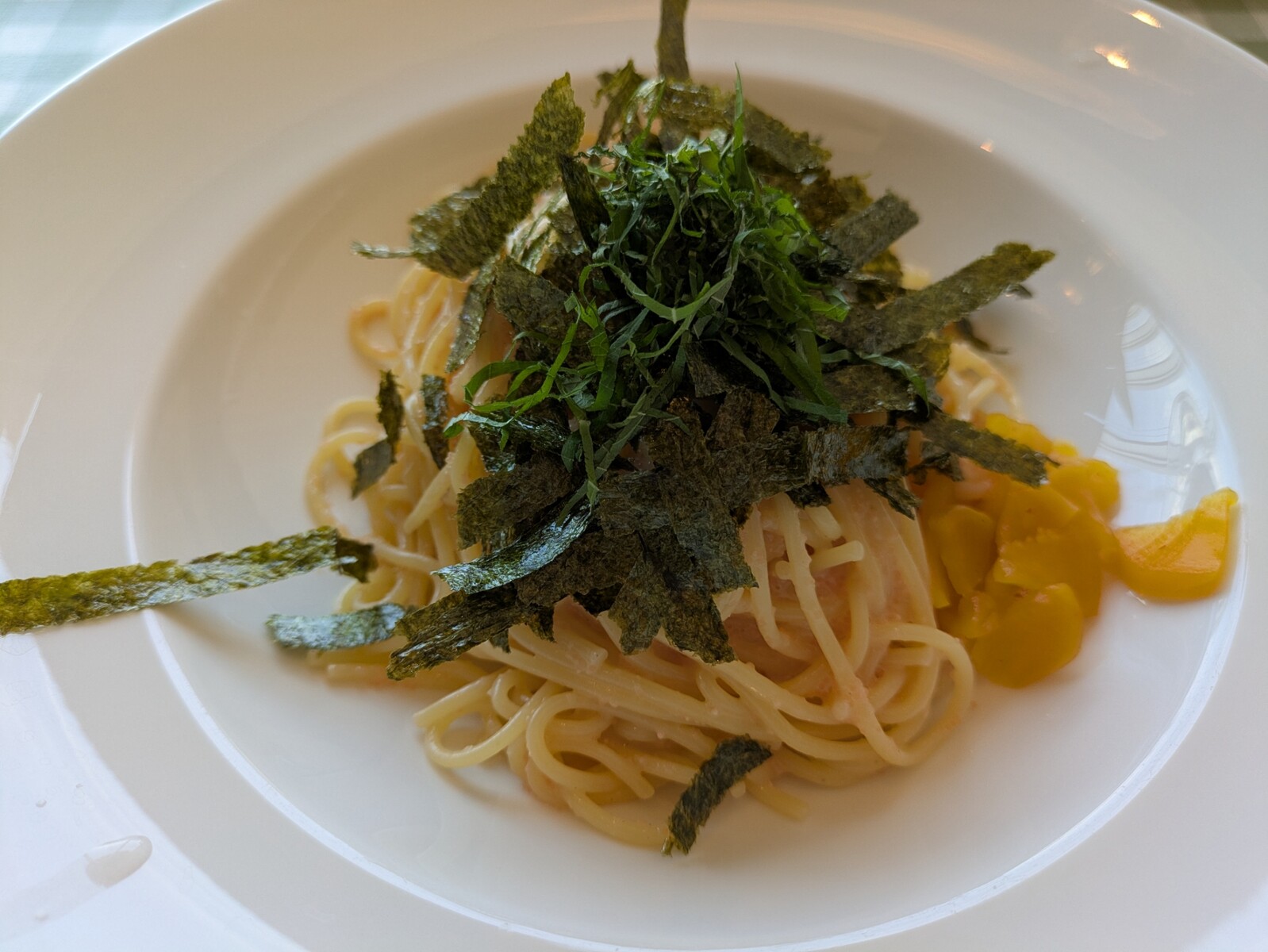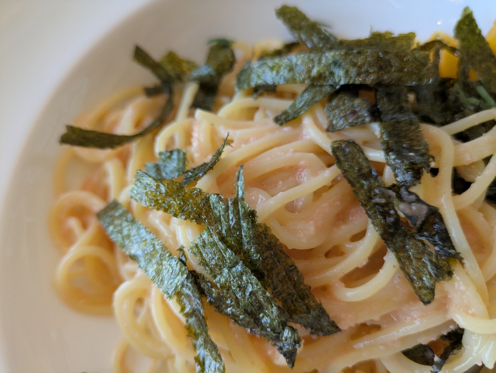 席に着くなり脇目も振らず注文したのはこちら。王道のたらこのパスタです。