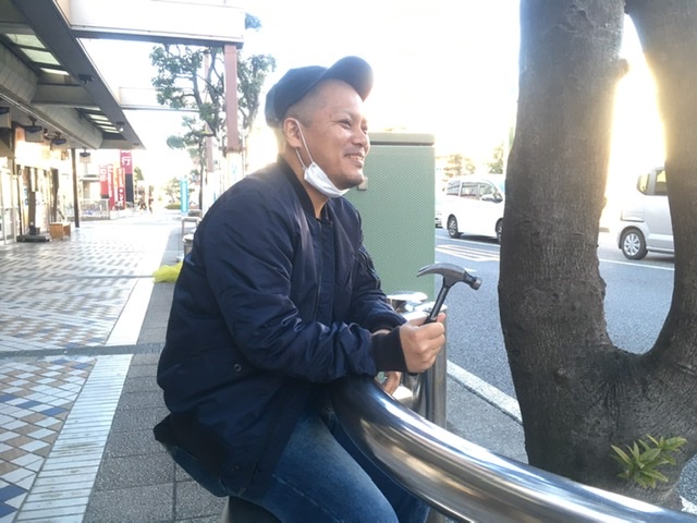 座れるところに無理やり誘導しても快く座ってくれた優しい古川さん。「なにかをつくって誰かが喜んでくれることがうれしい」と話してくれた古川さん。それは職種こそ違うが、料理人であるお父様の背中を見ている内にいつのまにか彼の中に根付いた気持ちだそう。昨年コロナ渦で行われた中央公園「週末の沼津」での彼の会場作りは多くの人の笑顔をつくっていた。泣ける。