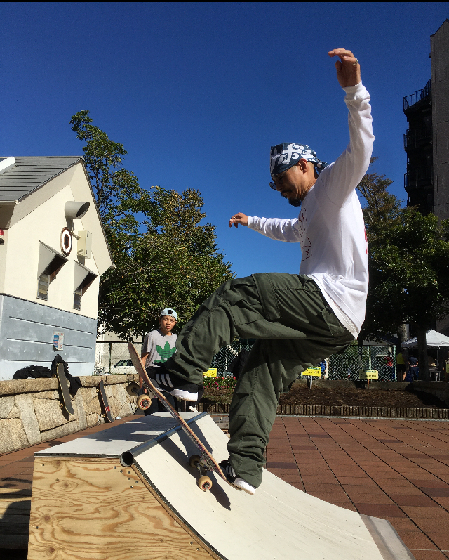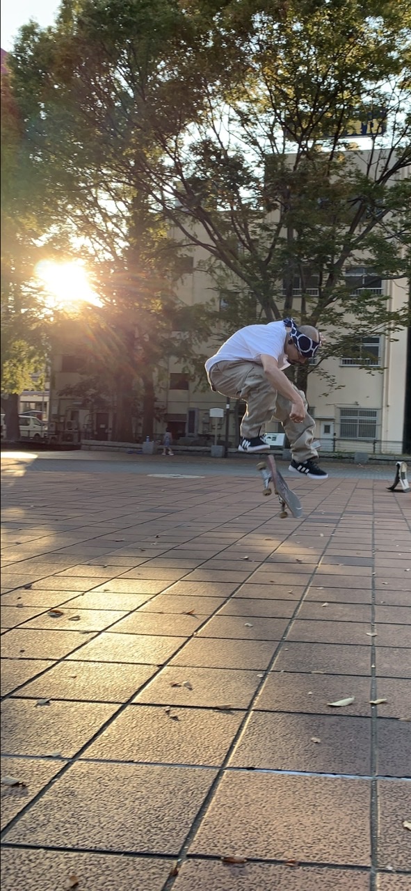 高校時代のスケボーでのケガの経験から理学療法士を目指し進学後、就職。働きながらリアルスケーターとして今もスケートボードと向き合っているしょうさん。先輩や若手からの人望も厚い。何度も飛び出していた「乾杯」という言葉は、ストリートやパーク、ローカルショップで出会う様々な世代や境遇の仲間との「その瞬間」を「まずは楽しもうぜ!」というしょうさんからのメッセージなんだと感じました・・・マジメか!