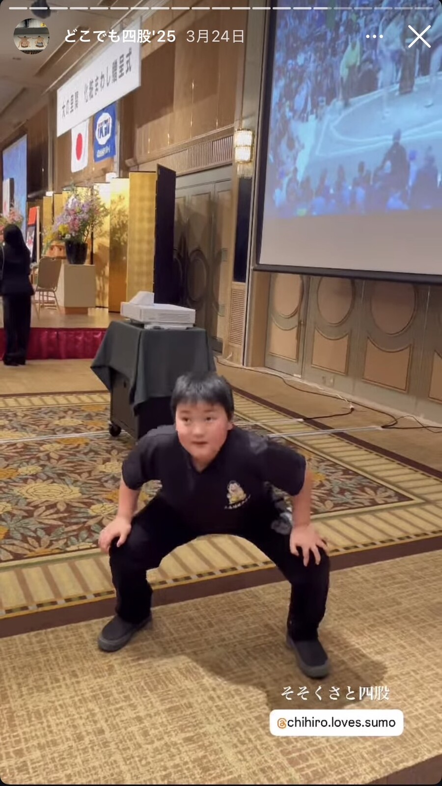主にストーリーやリールで発信している「どこでも四股(しこ)」というシリーズが、めっちゃおもしろい笑。お堅そうな会場で、そそくさと四股を踏んだり、