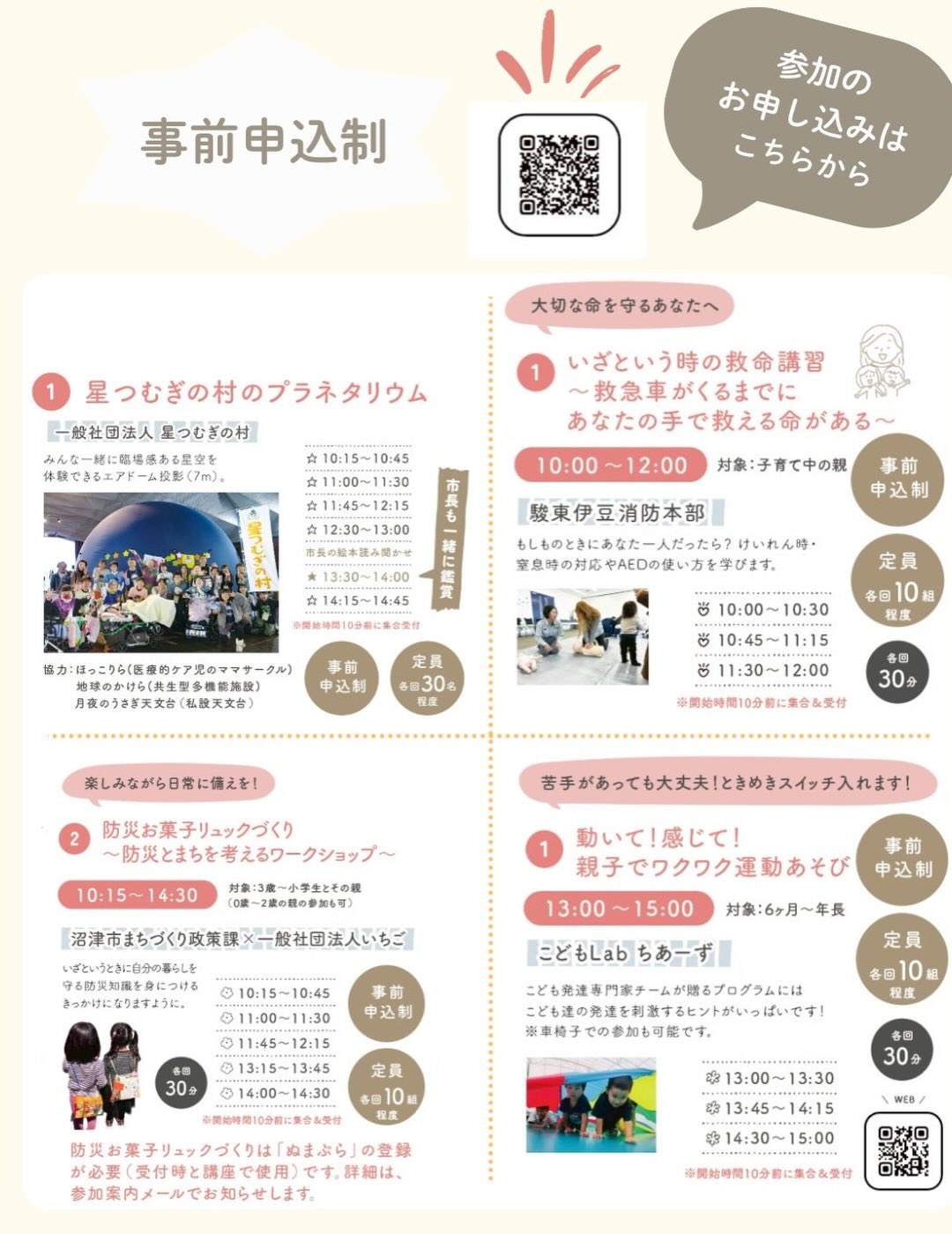 体を動かす遊びがあったり工作みたいなワークショップがあったり。2月最初の日曜日、どこ行こうか迷ってたら、ちょっとサンウェル寄ってみる。くらいの気持ちでちょうどいいかも。キッズが楽しめるのはもちろん、パパママも沼津の子育て情報を持って帰れそうな予感です。